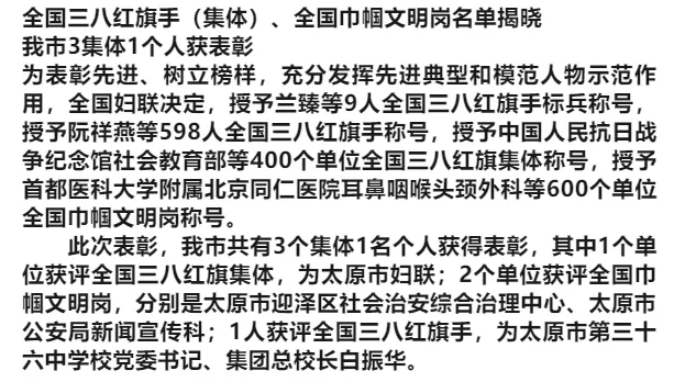 太原3集体1个人获表彰