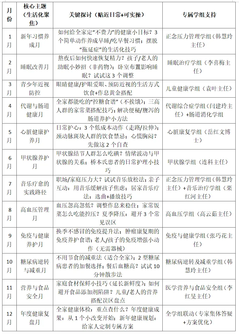 3.纯公益无门槛参与:所有线上讲座、专家定制资料包(食谱、养护方案、安全手册等)免费开放,社群内专家每月定期答疑,无论是普通健康爱好者还是有特定慢病需求的群体,都能轻松获取适配支持。