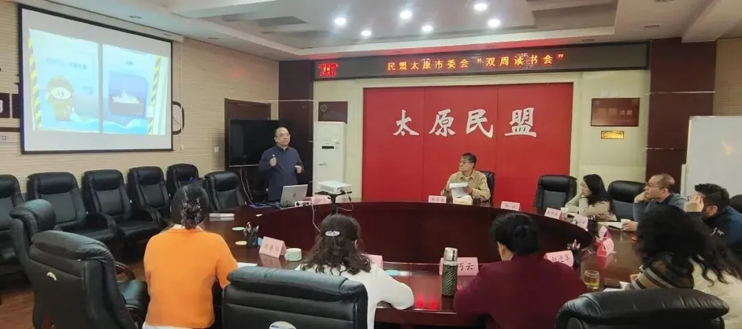 3月4日下午,民盟太原市委会在机关会议室举办“双周读书会”,机关全体干部、部分盟员参加。本次读书会邀请资深阅读推广人、国防教育宣讲专家吴静波老师担任主讲,分享书目为献礼抗战胜利70周年的权威图册《1949—2015中国大阅兵》。