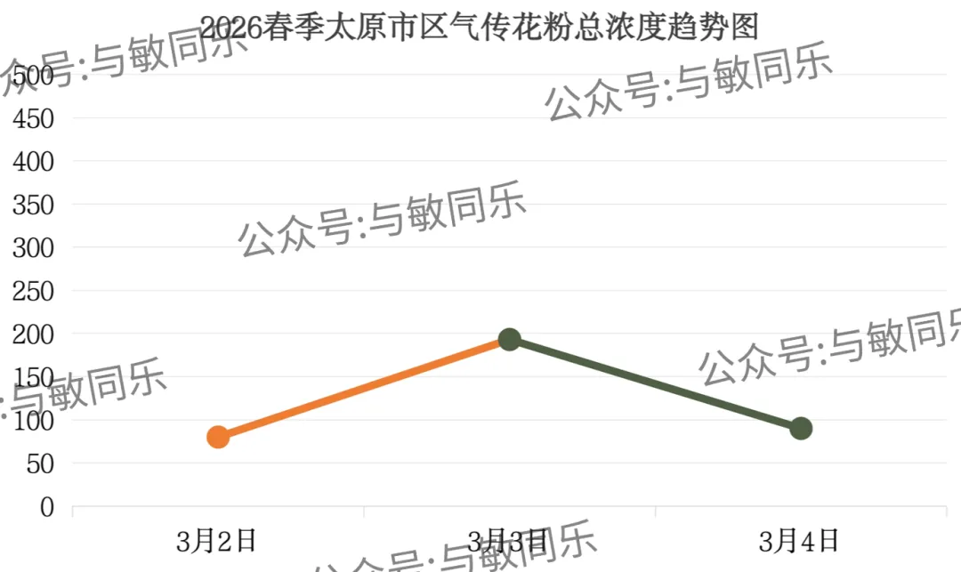 3月4日早8点至3月5日早8点:花粉总数在51~100(粒/1000mm²)之间,花粉总浓度为二级(花粉浓度较低)。