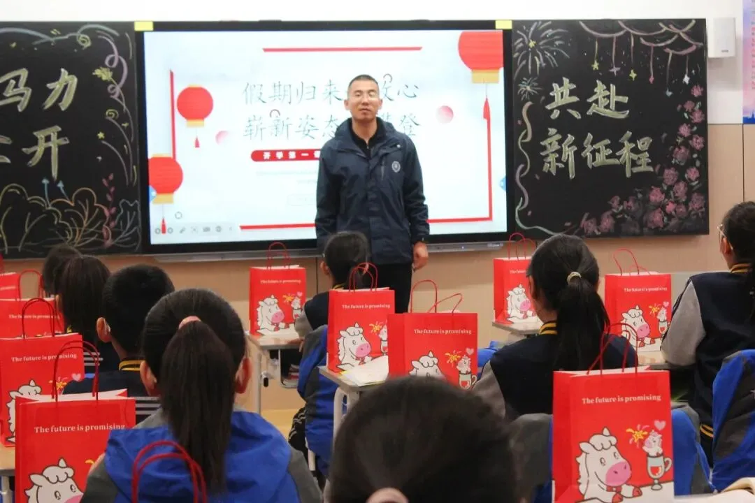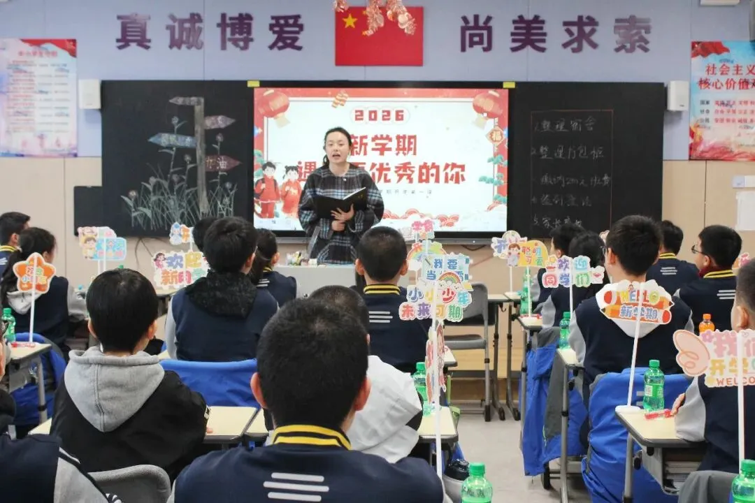 教室里,暖意融融。太原市彩虹双语学校的老师们早已提前到岗,用心筹备、细致布置,只为迎接学子归来。精心设计的黑板报图文并茂,承载着新学期的美好愿景;课桌椅摆放整齐、干净整洁,营造出舒适温馨的学习环境;一份份贴心准备的小礼品,更是藏着满满的关爱与鼓励。每一处细节、每一份用心,都凝聚着学校与老师对孩子们的殷切期许,愿同学们带着温暖与力量,在新的学期向阳而行、逐梦成长。