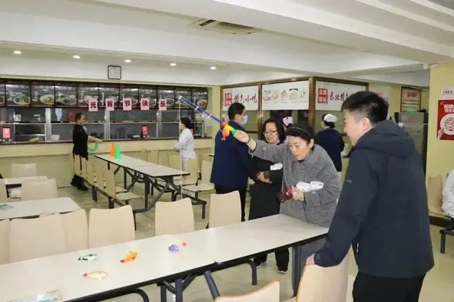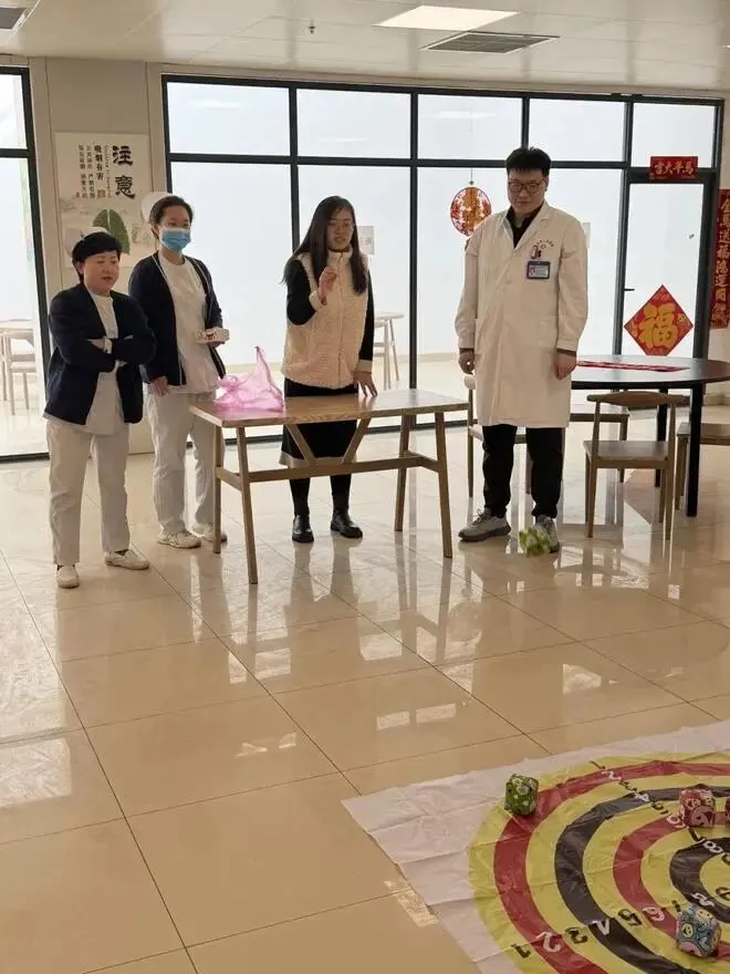 活动现场张灯结彩、喜气洋洋,猜灯谜、趣味投壶、套圈、飞镖、丢沙包等多项游艺项目,兼具知识性、趣味性与互动性。灯谜内容涵盖传统文化、生活常识、医疗科普等多个方面,职工们驻足思索、结伴探讨,在解谜中感受传统民俗的魅力。趣味游戏区掌声与笑声不断,大家默契配合、踊跃比拼,在轻松愉悦的氛围中放松身心、增进交流。