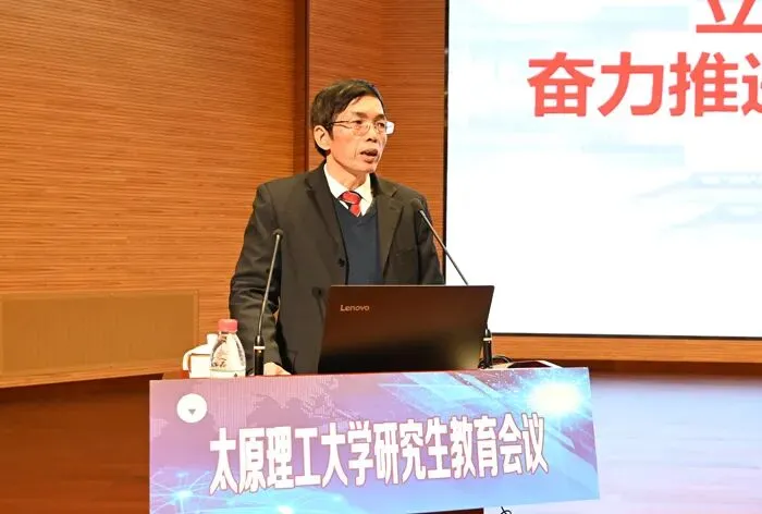 黄庆学作了题为《使命与未来》的报告。报告紧扣“立德树人”根本任务,从“深入学习贯彻全国研究生教育会议精神,以改革创新的精神推动研究生教育高质量发展”“高度重视研究生教育的特殊重要性,以勇于担当的精神做好新时代研究生教育各项工作”两大方面提出了我校研究生教育的发展任务。报告指出,学深悟透习近平总书记重要指示和全国研究生教育会议精神,一定要胸怀“两个大局”,明确目标和任务。要全面落实立德树人根本任务,确保研究生思想政治工作出实效;发挥“导师第一责任人”作用,促进导师队伍水平稳步提升;加强过程管理,严守研究生培养质量“红线”;持续做好科教融合和产教融合,搭建研究生培养的广阔平台;坚持破除“五唯”影响,持续做好研究生教育评价改革;超前布局新兴交叉学科,做好学科专业调整。黄庆学勉励广大师生为学要有大志向,为师要有大胸怀,协作要有大格局,改革要有大气魄,使太原理工大学研究生教育在全面建设社会主义现代化国家新征程上迎来又一个大发展的春天,全力以赴加快构建高水平人才培养体系,为加快创建综合性、研究型、高水平一流大学努力奋斗。