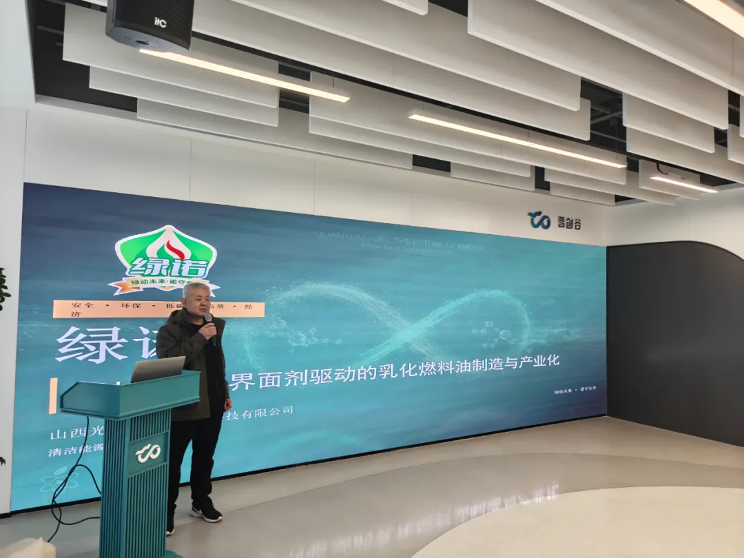 为进一步深入创新驱动发展战略,聚集政产学研用金各方力量,推动新质生产力的发展,助力“晋创谷·太原”建设,针对入驻企业融资需求,帮助企业及时对接科技金融服务,解决企业融资问题。3月4日,在太原市科学技术局指导下,太原技术转移促进中心、国投晋创谷(太原)发展运营有限公司、太原市尖草坪区科学技术局、中北高新区技术产业开发区改革创新部联合举办“晋创谷˙太原”企业科技成果路演活动。山西光合未来新能源科技有限公司进行了科技成果路演,太原农商行金融方面单位应邀参加。山西光合未来新能源科技有限公司科技人员就“纳米复合界面剂驱动的乳化燃料油制造与产业化”进行路演,公司依托晋创谷产学研协同创新平台,汇聚顶尖科研团队,攻克纳米乳化、清洁燃烧等关键技术,自主研发的 "绿诺·新结构纳米乳化液" 已获多项国家专利,深耕安全环保型燃料领域,突破传统能源高污染、高风险的行业痛点,产品覆盖工业、商业及民生场景,助力"双碳"目标落地。此次路演中,企业计划拟通过金融贷款融资,用于新产品研发,纳米技术的开发和应用。带领团队开发纳米抗菌复合材料、纳米光催化材料、纳米阻燃材料等。开发的乳化燃料油配方不仅提高能源的利用率,还有助于减少能源的浪费,为社会的可持续发展做出贡献。开发纳米助燃剂和乳化剂降低了对大气的污染,还有助于改善环境质量,推动绿色能源的可持续发展。企业积极响应国家双碳政策,减少碳排放,推动能源转型,为应对气候变化贡献企业力量。