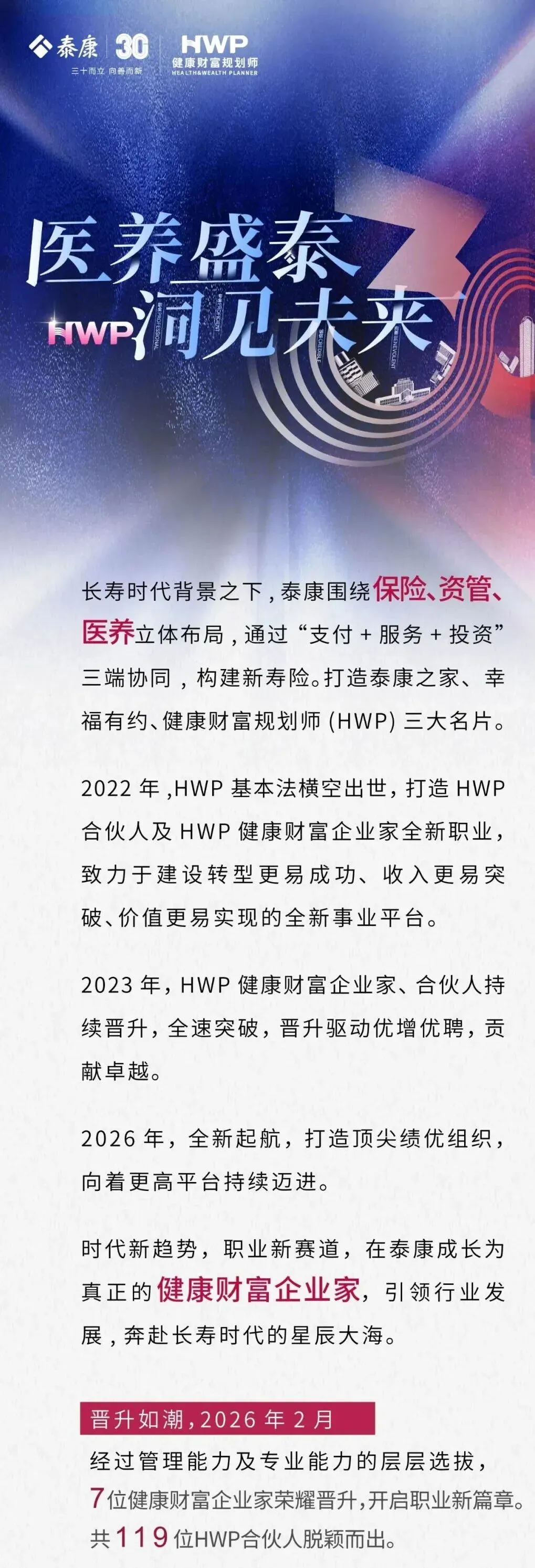 >恭喜山西太原李海霞、宫瑞 荣耀晋升2026年第二批HWP健康财富企业家、合伙人