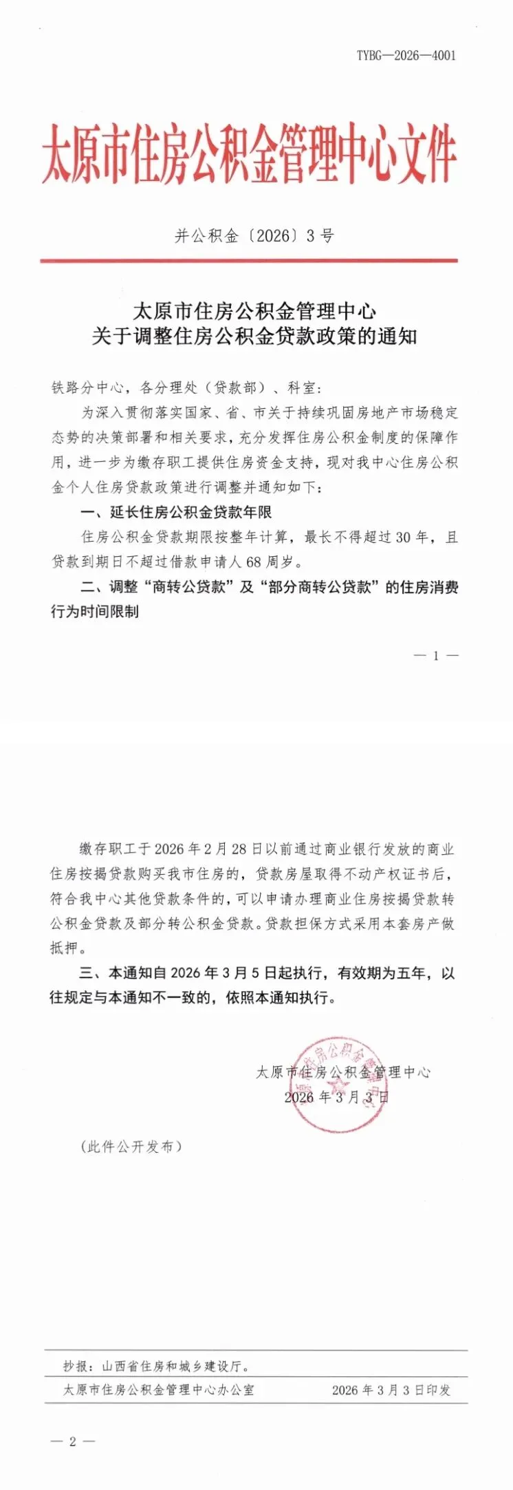 >太原市住房公积金管理中心关于调整住房公积金贷款政策的通知
