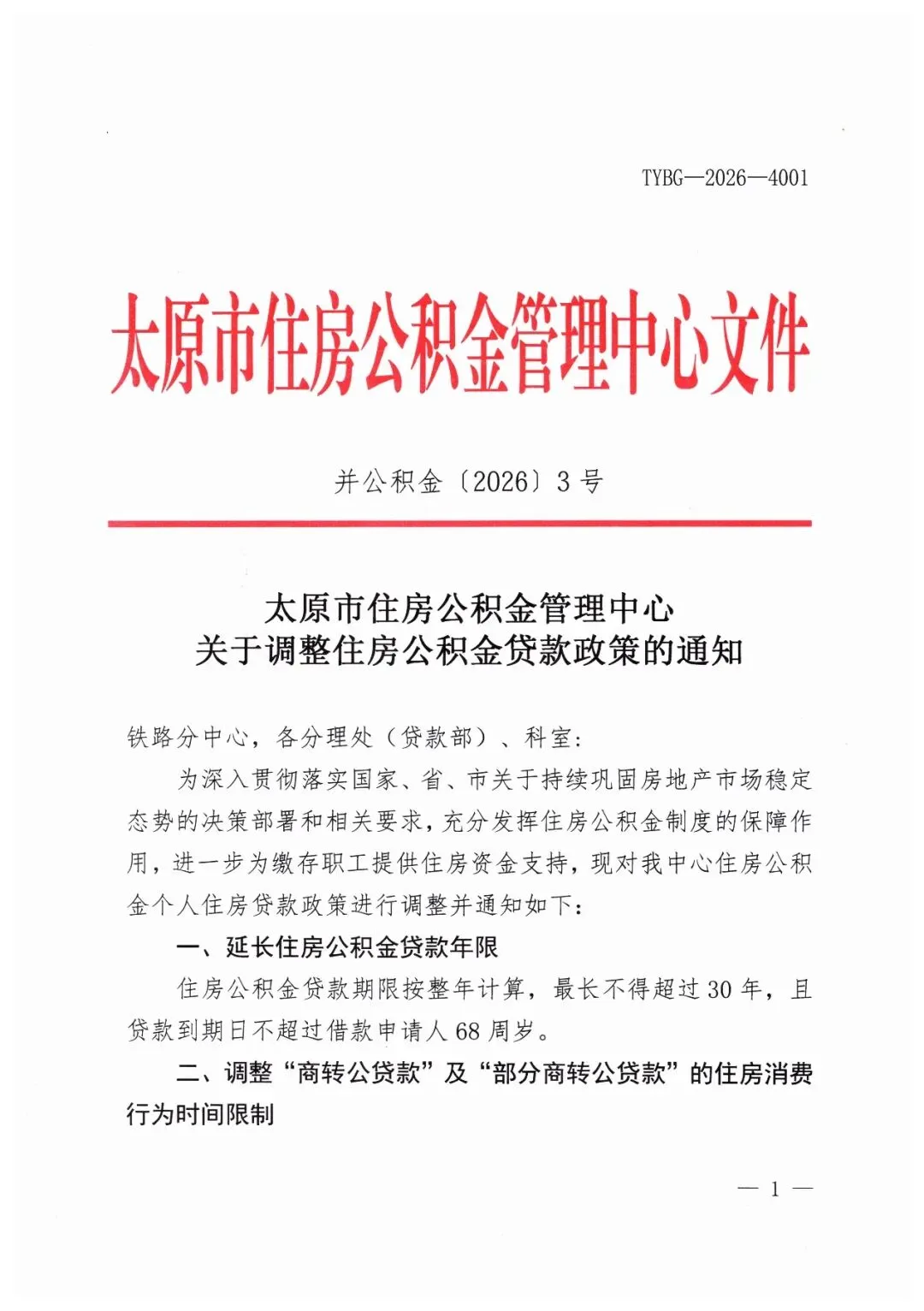 2026年3月4日,也就是刚刚,太原住房公积金管理中心发布了:太原市住房公积金管理中心关于调整住房公积金贷款政策的通知。