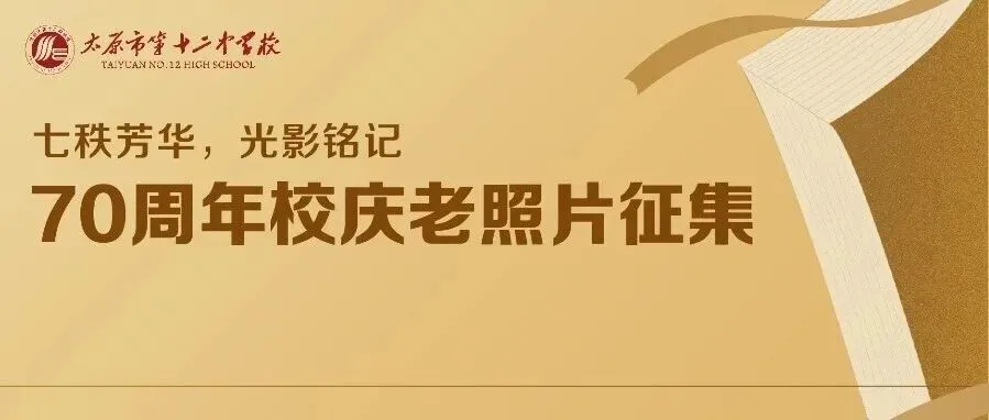 为更好地传承历史文脉,凝聚师生校友情感,展现学校的办学风采与昂扬向上的精神风貌,现特面向全校师生、历届校友、离退休教职工及社会各界人士公开征集太原十二中相关老故事、老照片、70周年校庆标识(LOGO)与校庆吉祥物形象设计方案。我们期待您用独特的创意与灵感,为母校的七十岁生日献上一份特别的礼物!