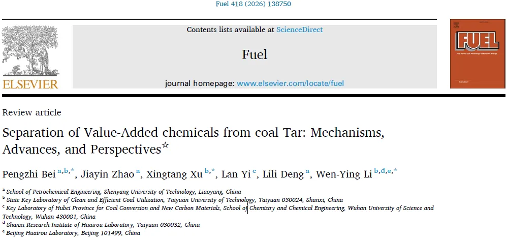 1. Zhi-Hao Ma, Wen-Lin Li, Li-Yan Hu, et al. Molecular recognition combined with sequential extraction of aromatics from high-temperature coal tar pitch for separating chemicals: A comprehensive study of experiment and quantum chemistry. Renewable Energy 241 (2025) 122329.