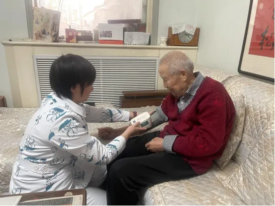 志愿护理服务队深入部分军休干部家中,开展了充满温情的入户走访和健康关怀活动。走访过程中,每到一户,医疗队员都与军休干部及家属亲切交谈,转达组织对革命功臣的崇高敬意和诚挚问候。工作人员详细询问老同志们的身体状况、生活习惯和用药情况,耐心倾听他们的健康诉求。现场,医护人员为军休干部进行了包含血压、血糖测量,听诊、做心电图等项目的常规体格检查,并结合每位老人的具体情况,提供了个性化的健康指导、用药建议和康复护理意见。对于一些患有慢性病的老同志,医护人员还特别叮嘱了日常保健注意事项和疾病预防知识。