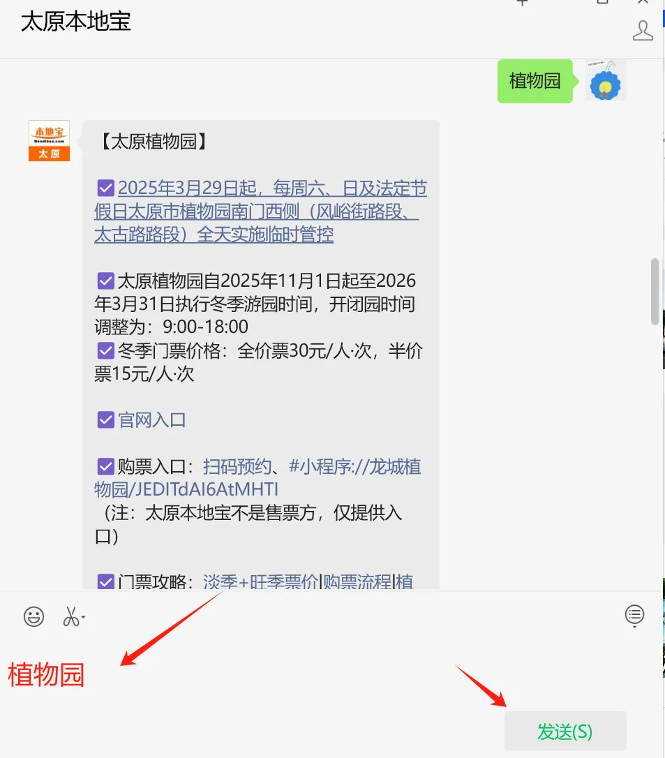 5.太原植物园门票可在微信小程序、美团等平台购买。