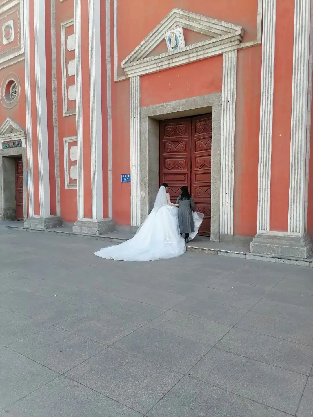 坐落在太原解放路的天主堂,始建于清同治九年(1870)。这座历经沧桑的圣殿在庚子年(1900)被毁,于光绪三十一年(1905)得以重建。历史上整个堂区占地曾达约13.3万平方米,现存的主体建筑礼拜堂及其两侧的西式尖顶钟楼,面积约4300平方米。作为太原市规模最大的天主教友活动场所,天主堂于2013年3月被国务院公布为第七批全国重点文物保护单位。今天,这座古老的教堂似乎正见证着一场婚礼的举行。