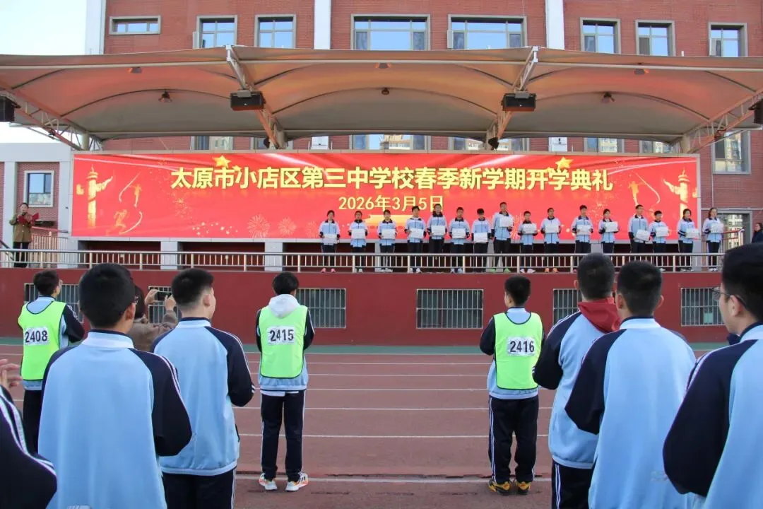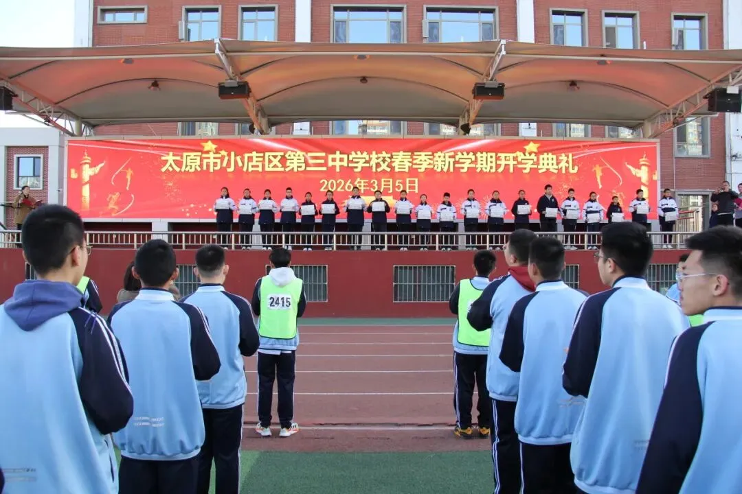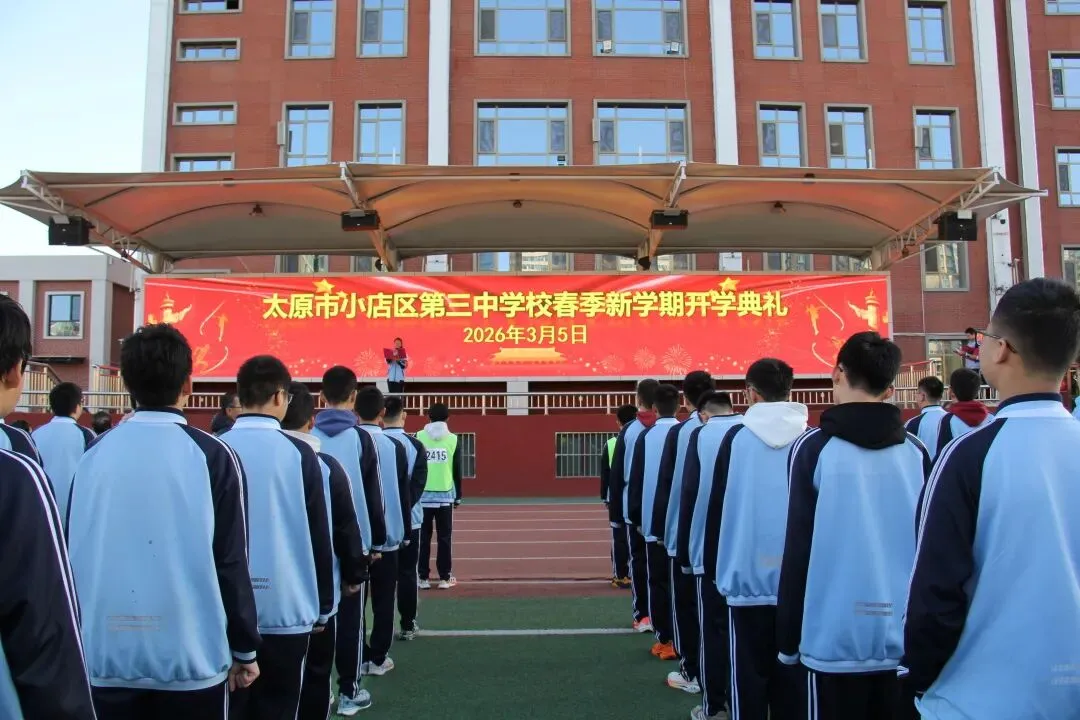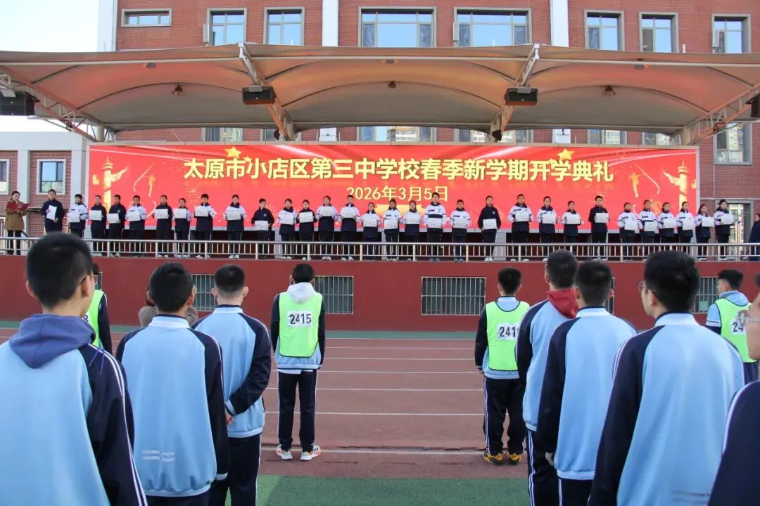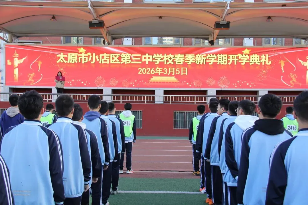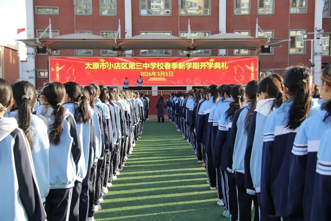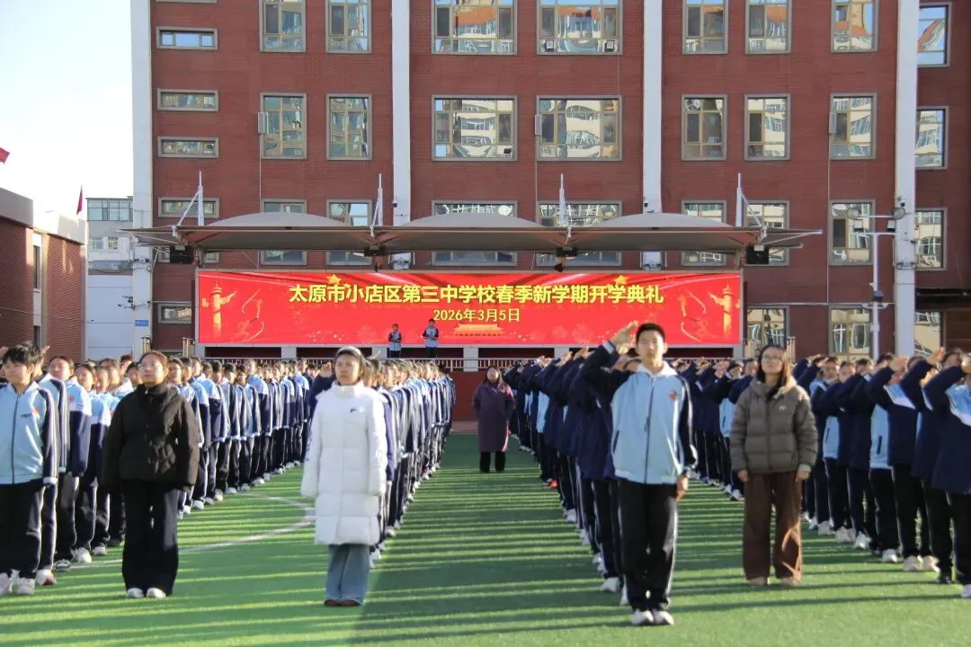 新起点,新征程;新目标,新作为。本次开学典礼庄重而温馨,为新学期各项工作的开展奠定了坚实基础。站在2026年的春天里,太原市小店区第三中学校全体师生将以饱满的热情、昂扬的斗志,携手并肩、砥砺前行,续写学校高质量发展的新篇章!