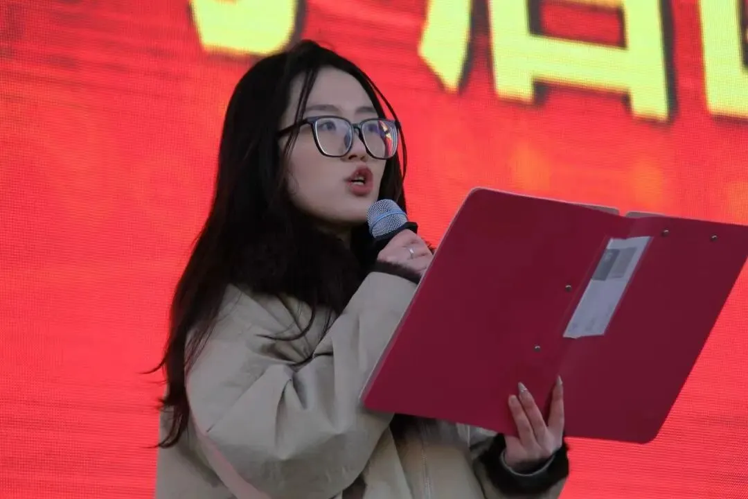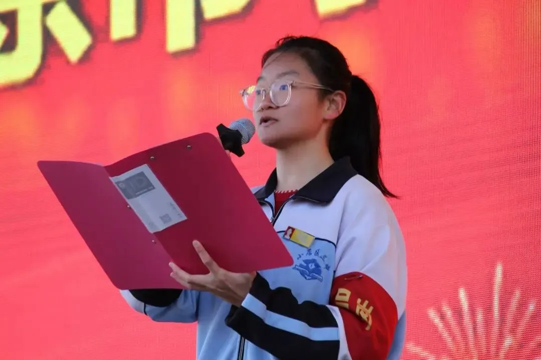 学生代表张兆淼同学上台发言,言辞恳切、意气风发。她分享了成长感悟与学习心得,表达了新学期脚踏实地、勤学苦练、全面发展的决心,号召全体同学珍惜时光、不负韶华,以青春之我、奋斗之我,在三中校园绽放光彩。