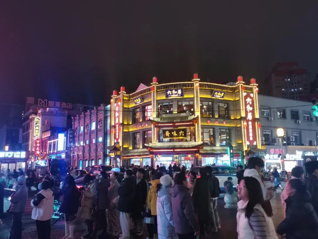 斜对面的街角,六味斋、六和居的招牌醒目亮眼,红灯笼串串垂落,热闹却不嘈杂。菜馆门头端庄大气,民国风骨藏在砖瓦之间,门前红底黑字的春联依旧鲜艳,年味未散,暖意融融。推门入内,寻位置落座,点上几道本地非遗特色菜。菜上桌,入口皆是地道滋味,鲜香醇厚,一餐饭吃得安稳又满足,老太原的烟火与温情暖了我的胃。