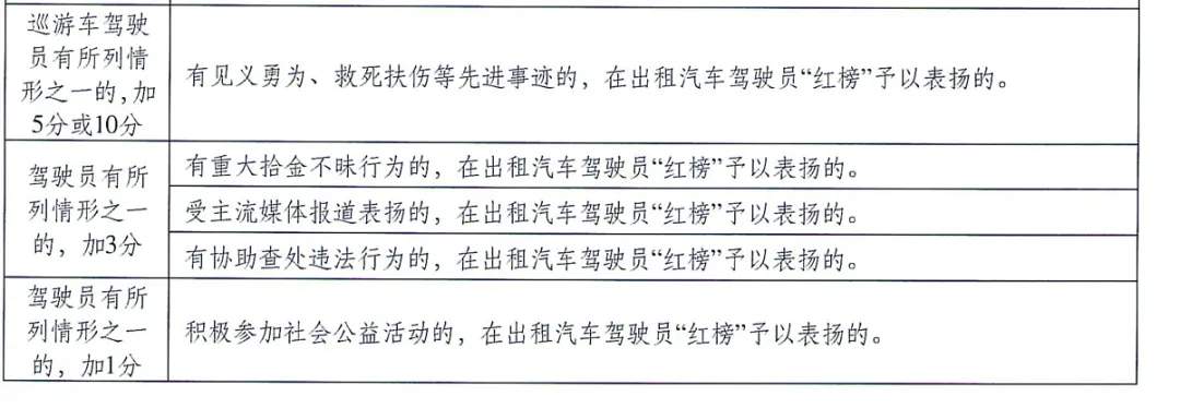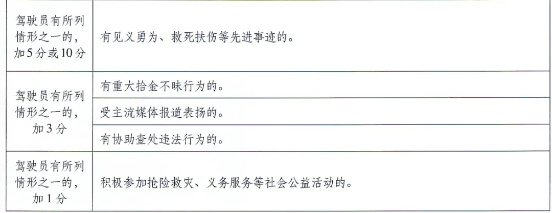 比如严重的行为,一次扣20的如上图。除此之外,还有各种扣1分到十分不等的各种规定。总之是详细又全面,在这里就不再一一列举了。当然除了扣分之外,还有加分行为具体如下: