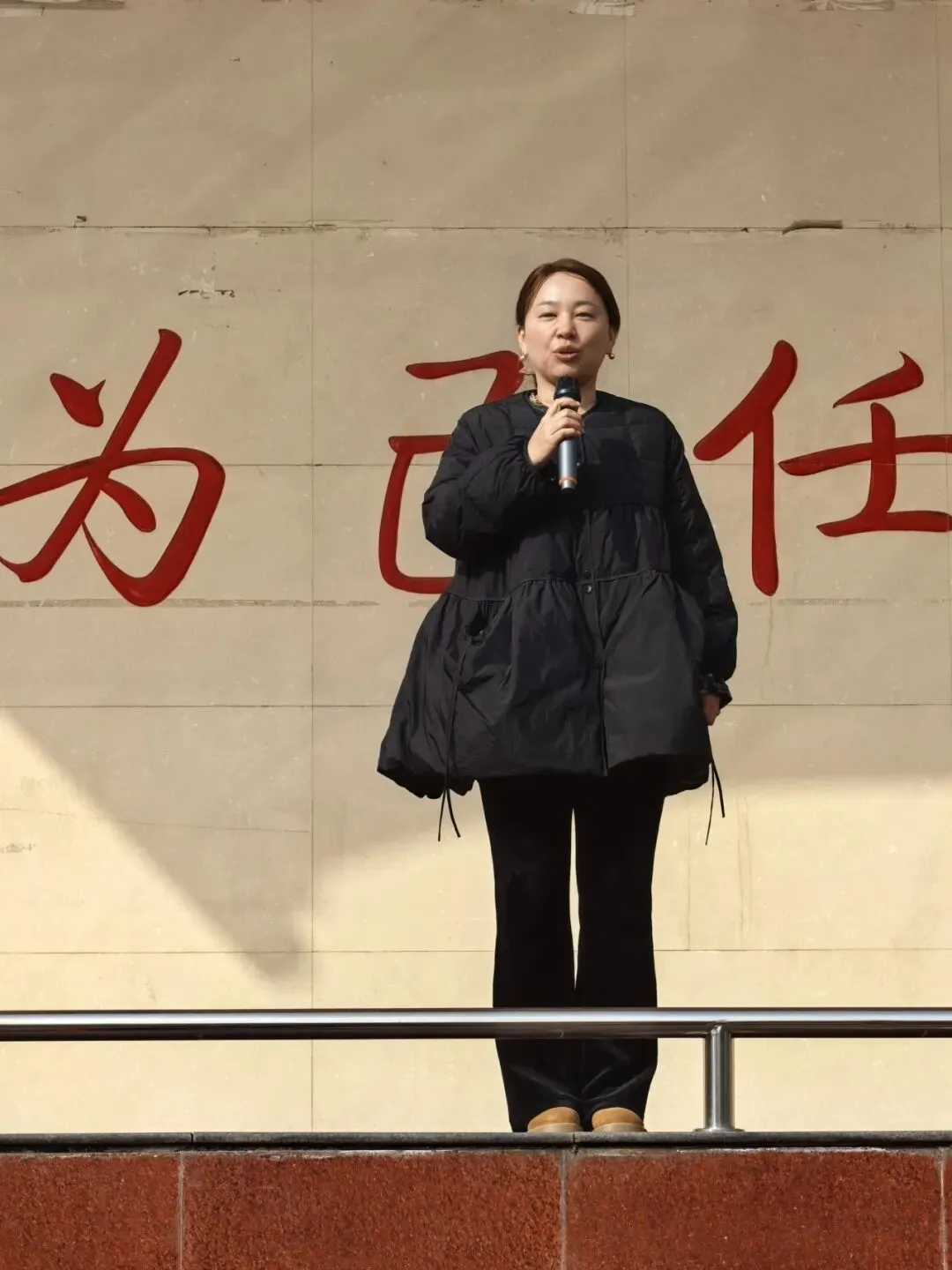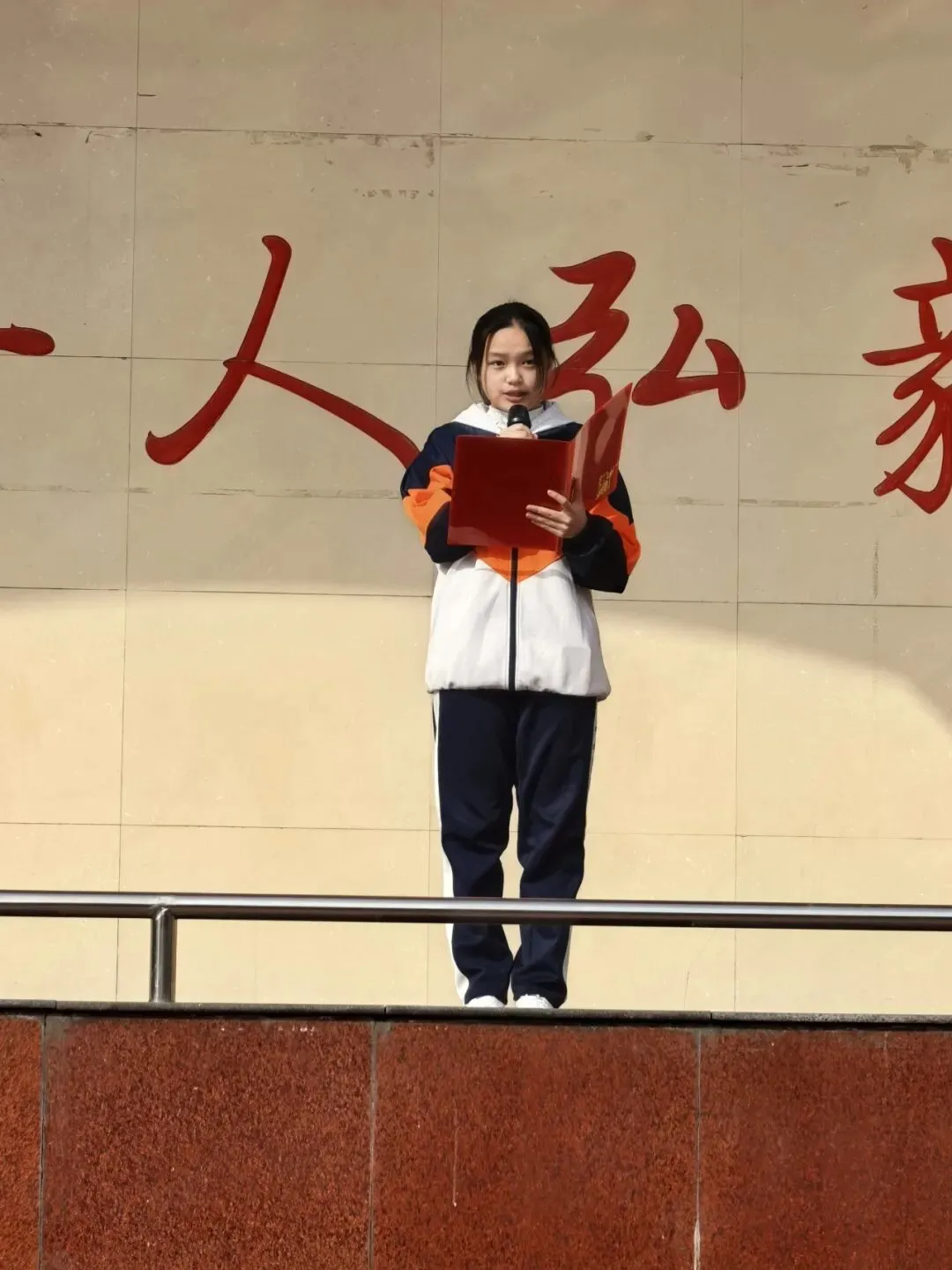 教师代表张卉雯老师以“锚定目标,奋力攻坚”为题,号召同学们明确方向、迎难而上,承诺全体教师将潜心育人、陪伴成长。学生代表张苌楚同学发言,倡议全体同学勤奋自律,以实干书写青春答卷。