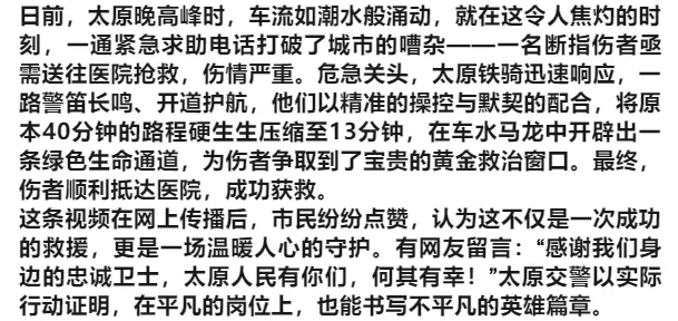 赞!太原铁骑13分钟打通40分钟急救路