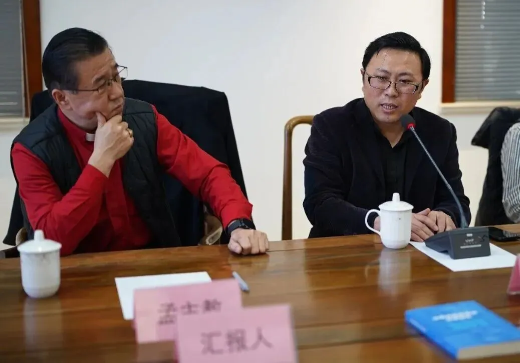 2026年3月3日,社服中心召开2025年度述职报告会,孟宁友主教、刘建刚神父及中心全体员工参会。