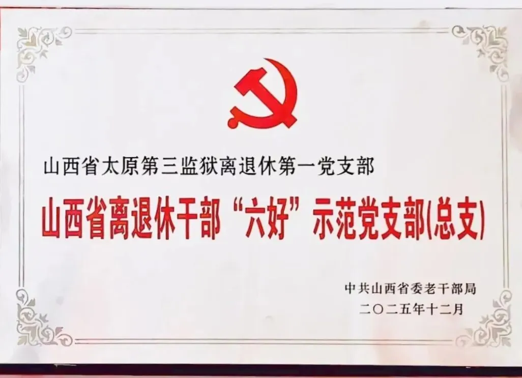 近日,中共山西省委老干部局印发《关于命名2025年度山西省离退休干部“六好”示范党支部(总支)的通报》,山西省太原第三监狱离退休第一党支部荣获山西省离退休干部“六好”示范党支部(总支)称号。