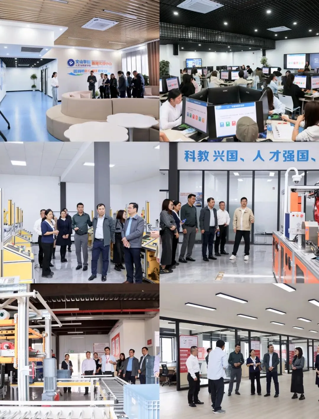 在文山学院副校长汤龙陪同下,代表团先后走访学校图书馆、新闻实训中心、智能制造实训中心、京东实训中心、传习馆及学生食堂、宿舍,实地考察办学条件、专业实训平台与学生生活保障设施,全面了解学校办学特色与建设发展成果。在各教学实训场所,代表团现场体验智慧图书馆服务、传媒实训、智能制造、电商直播、智慧物流等教学场景,对学校智慧化建设、产教融合、校企合作等育人成效给予高度评价。