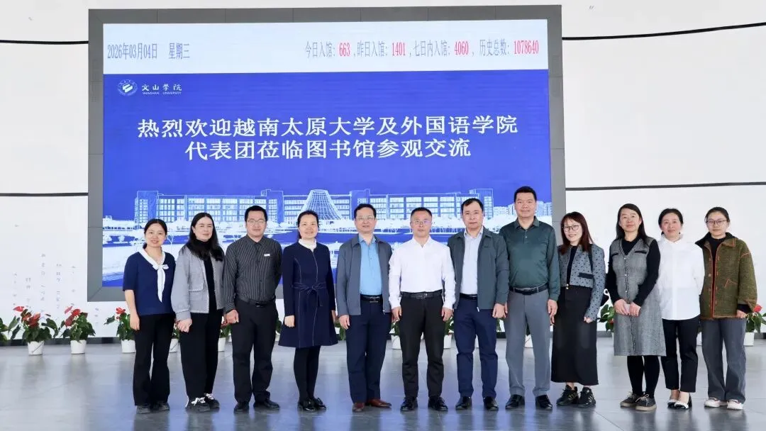 3月4日,越南太原大学科学技术与对外合作处处长梅英科率越南太原大学外国语学院代表团一行4人到访文山学院。代表团专程护送越南太原大学外国语学院64名中文专业学生赴文山学院开展短期留学,并同期进行校际交流访问,共话合作、共谋发展。