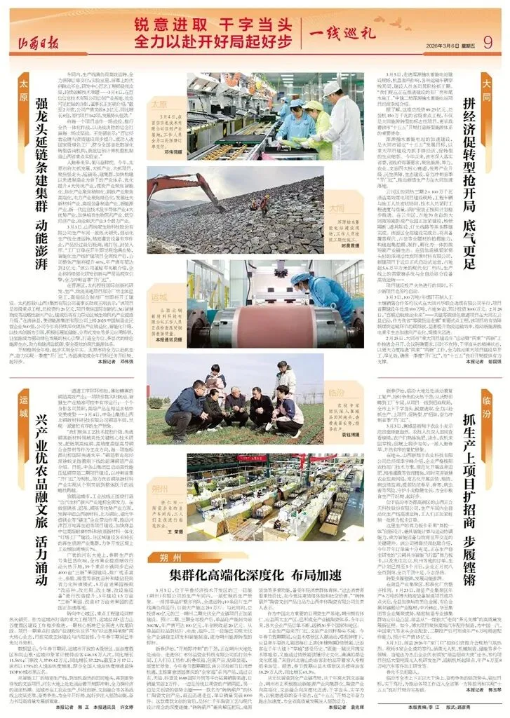 人勤春来早,策马奋蹄疾。今年,太原市将大抓发展、大抓产业、大抓项目,聚焦强龙头、延链条、建集群,加快构建以先进制造业为骨干的产业体系,优化提升4大传统产业:煤炭产业聚焦智能化、焦化产业聚焦精细化、钢铁产业聚焦高端化、电力产业聚焦绿色化,发展壮大新材料产业、高端装备制造产业、新能源产业、新一代信息技术及半导体产业4大优势产业,加快培育生物医药产业、低空经济产业、商业航天产业3个潜力产业。