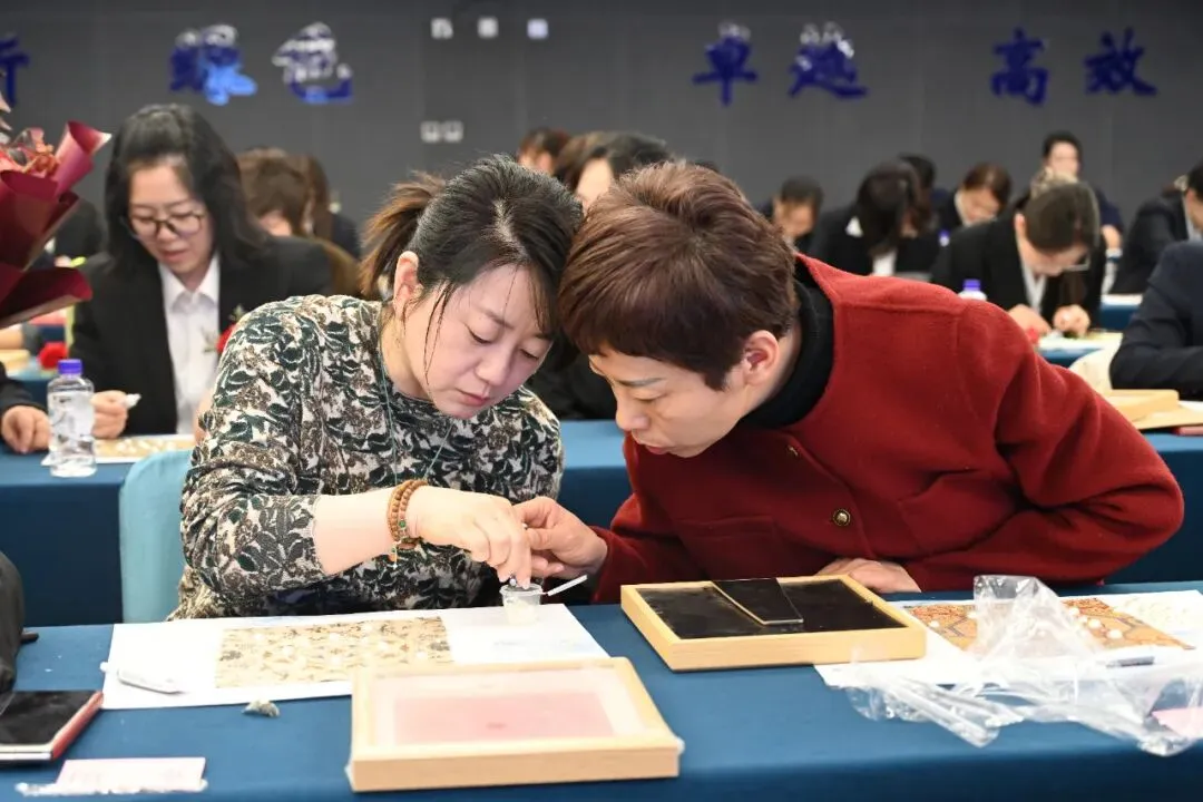 在非遗传统文化培训中,公司邀请到宋锦珍珠画领域的资深匠人,深入浅出地带领大家领略非遗锦韵的历史渊源、制作工艺与艺术价值。女职工们纷纷动手实践,一幅幅精美的宋锦珍珠画展现了女职工的巧手慧心,更让非遗文化在指尖传承与发扬。