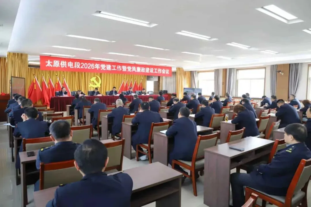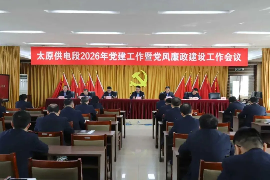 3月5日上午,太原供电段党委召开2026年度党建工作暨党风廉政建设工作会议,段领导班子成员,机关各科室科长及部分车间党员干部在主会场参加会议,车间主任、党总支书记、支委委员及车间其他干部通过电视电话会议形式参会。