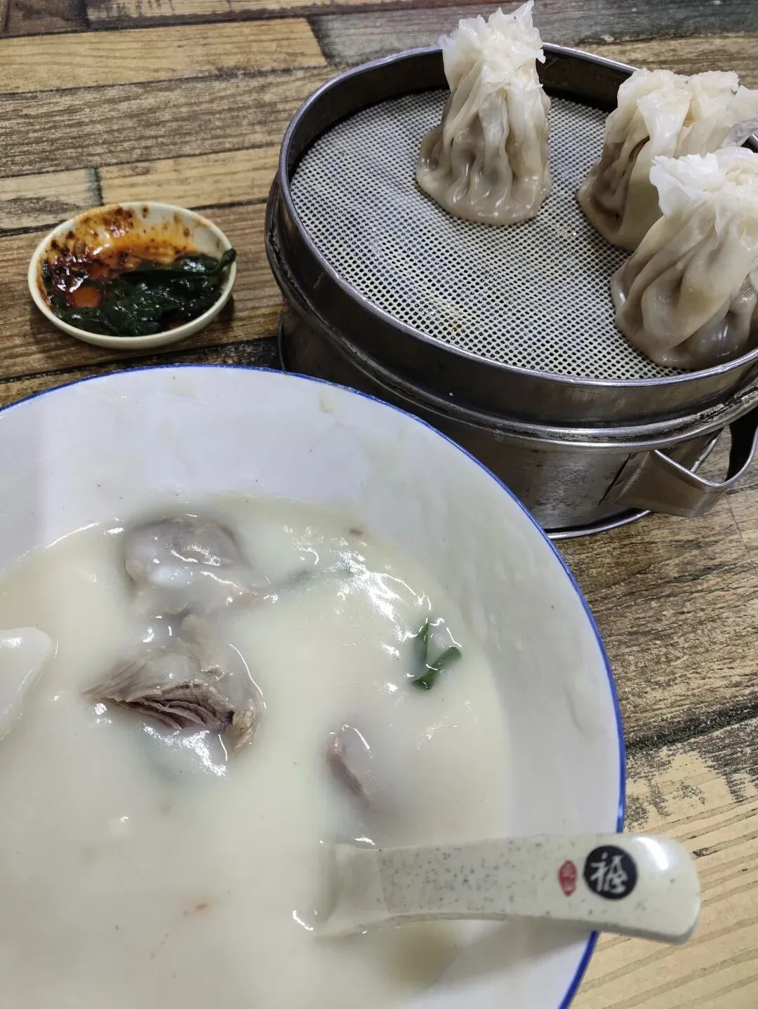 今天给一家店送货,到了一看是清真店,好久没吃头脑了,就要了一个单碗,一笼稍麦,好吃,家常味也可以说私房味,稍麦是那种敦实型的,宝子们路过可以来尝尝。