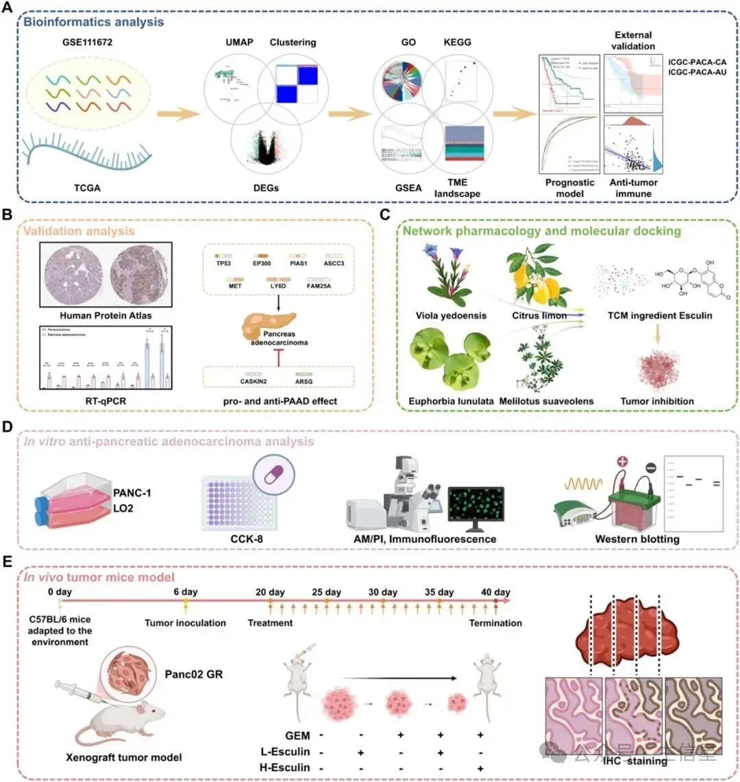目标:构建基因风险模型,筛选与PDAC耐药性相关的靶点,并验证七叶内酯(Esculin)对耐药性的影响。