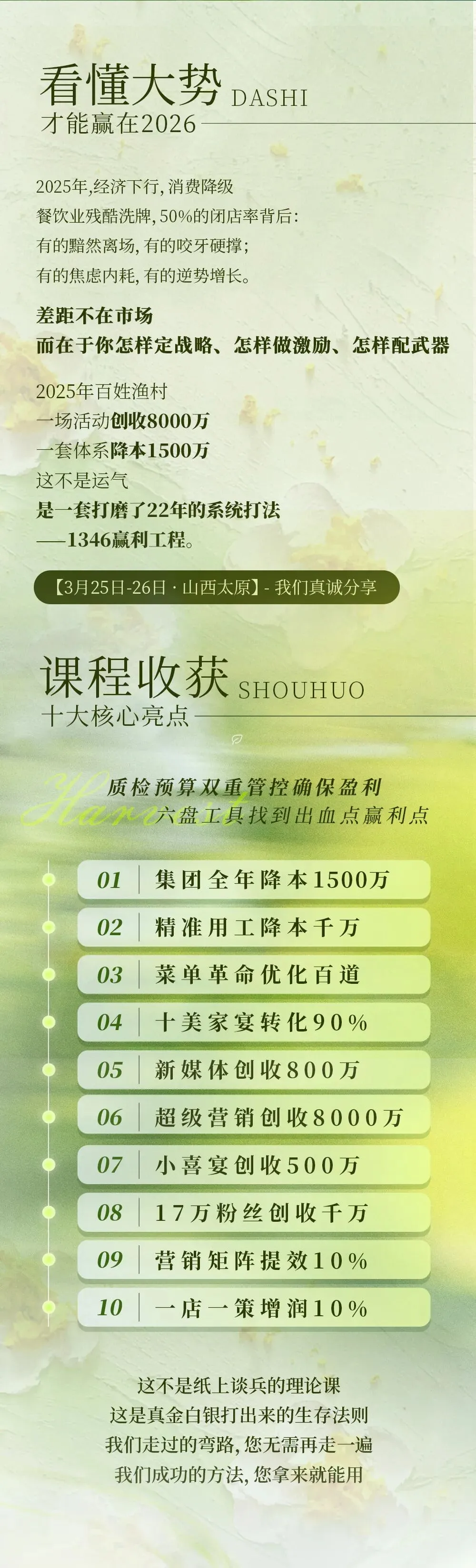 >【太原站】3月25-26日第338期中成伟业&百姓渔村《2026·百姓渔村“1346赢利工程”》路演班