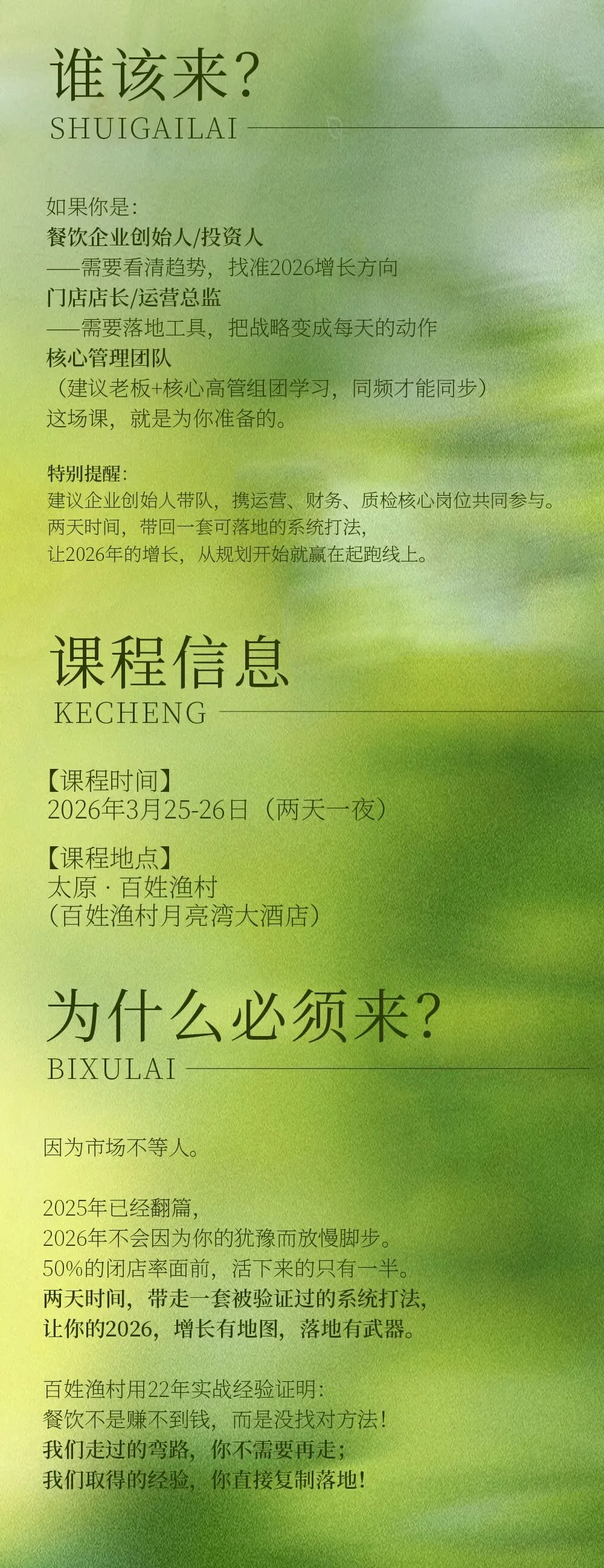 【太原站】3月25-26日第338期中成伟业&百姓渔村《2026·百姓渔村“1346赢利工程”》路演班
