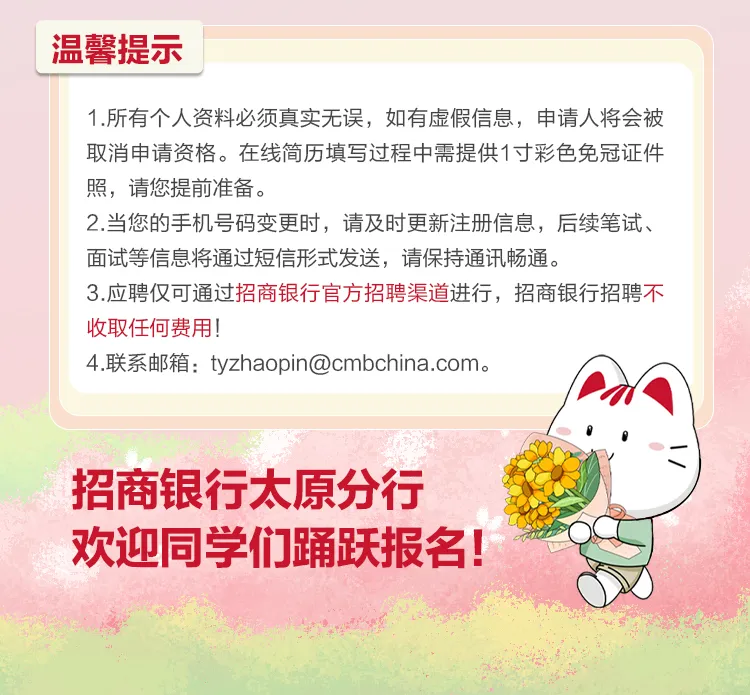 【招聘公告】招商银行太原分行2026年招聘,不限专业!