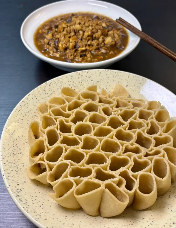 是什么:莜面卷成蜂窝状蒸熟,蘸酸辣凉汤或羊肉热汤。