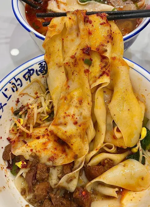 中午得吃面。这里的油泼面是一绝。面条宽得像裤带,煮得透亮,上面铺满秦椒面。滚烫的热油往上一浇,“滋啦”一声,香味就炸开了。拌匀了吃,每一根面条都裹着油泼辣子的香,咬下去劲道弹牙,嘴边沾满红油,那才叫满足。