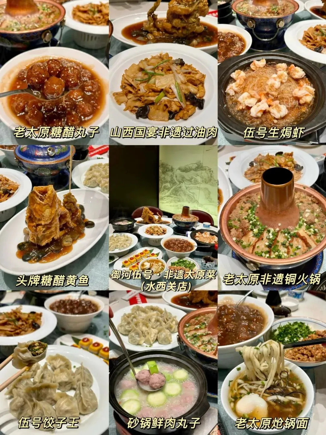 ✅地道山西晋菜宝藏店:御河伍号·非遗太原菜(水西关店)、锦上云面馆、林香斋、清和元、杏花堂、老太原、炉玖、晋小福、三晋饭庄、土包滋。饭点还没到就排起长队啦,装修独具特色,菜品闭眼点都不踩雷,作为本地人我也常去,物美价廉,环境和服务都超棒。