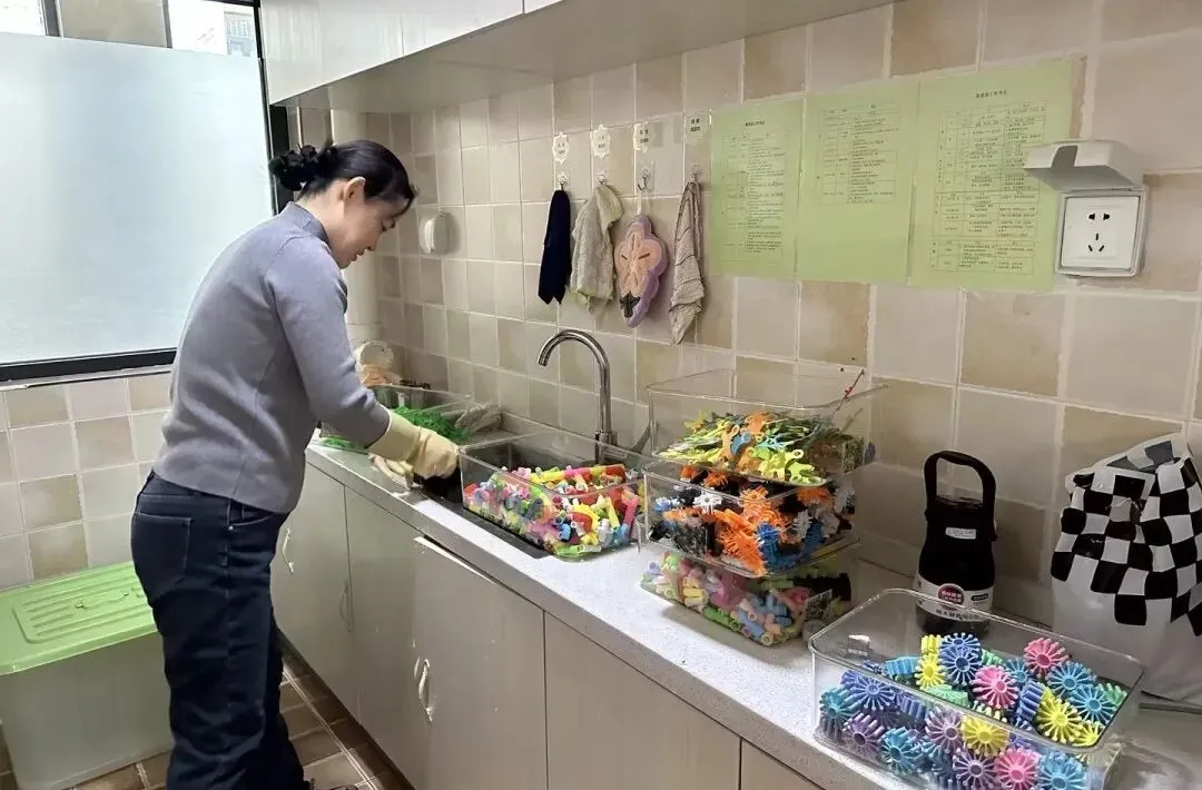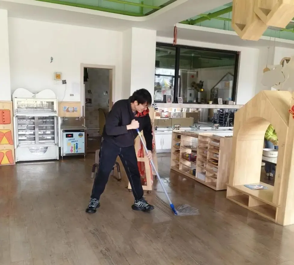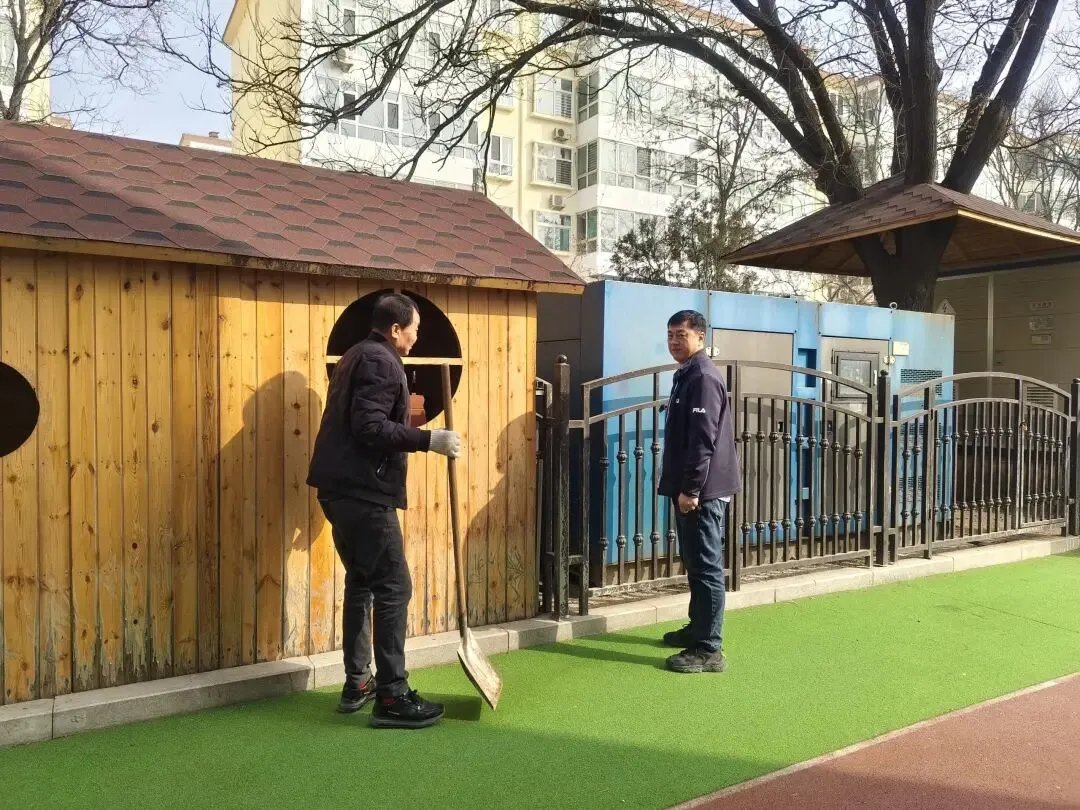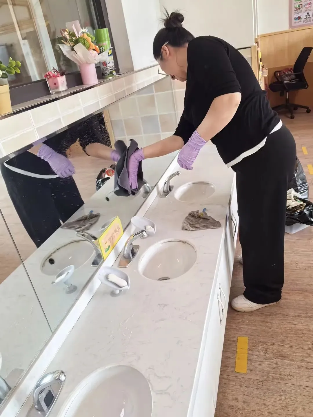 户外是孩子们奔跑、嬉戏的天地,大型滑梯、攀爬架、小黄车……每一件器械都承载着孩子们的欢乐。为了让这些“大玩具”以最洁净的面貌迎接宝贝,老师们化身“清洁卫士”,对户外活动区域进行了全方位、无死角的清洗与消毒。