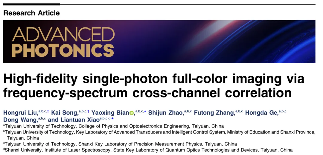 研究成果于2026年3月4日以题为“High-fidelity single-photon full-color imaging via frequency-spectrum cross-channel correlation”发表在《Advanced Photonics》上。