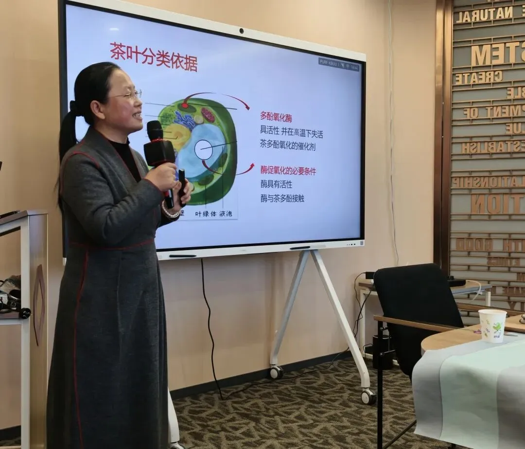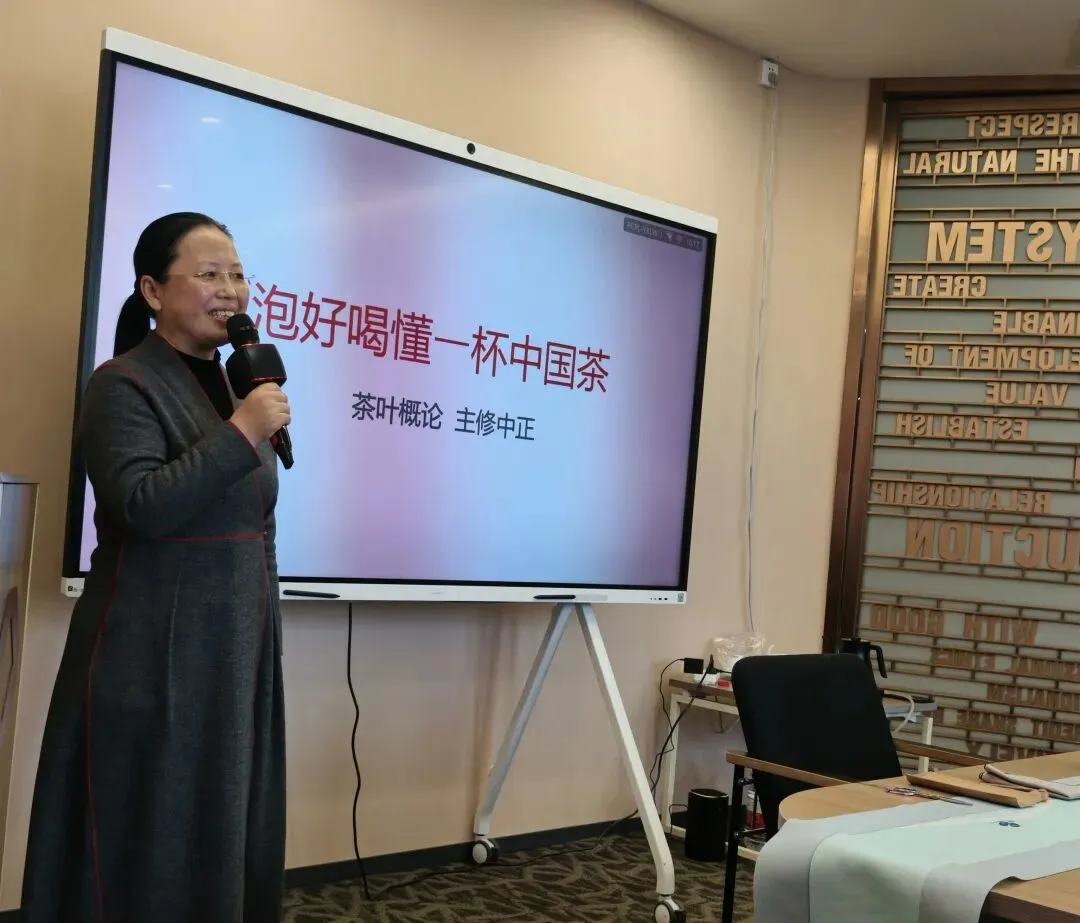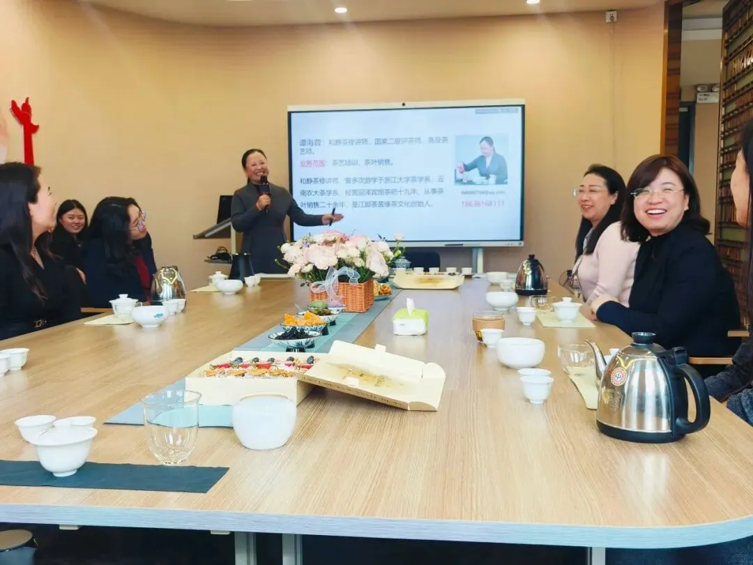 活动在轻柔的古琴声中拉开帷幕。谭海蓉老师以“茶与健康”为切入点,从科学角度深入浅出地讲解了茶叶中的化学成分及其对人体的滋养功效。她提到,茶多酚、氨基酸、咖啡碱等成分不仅赋予茶叶独特的香气与滋味,更在抗氧化、提神醒脑、舒缓情绪等方面发挥着积极作用——这份源自自然的馈赠,恰如当代女性柔韧而坚定的力量。