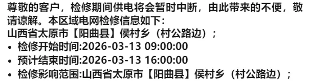 >太原:停电通知!