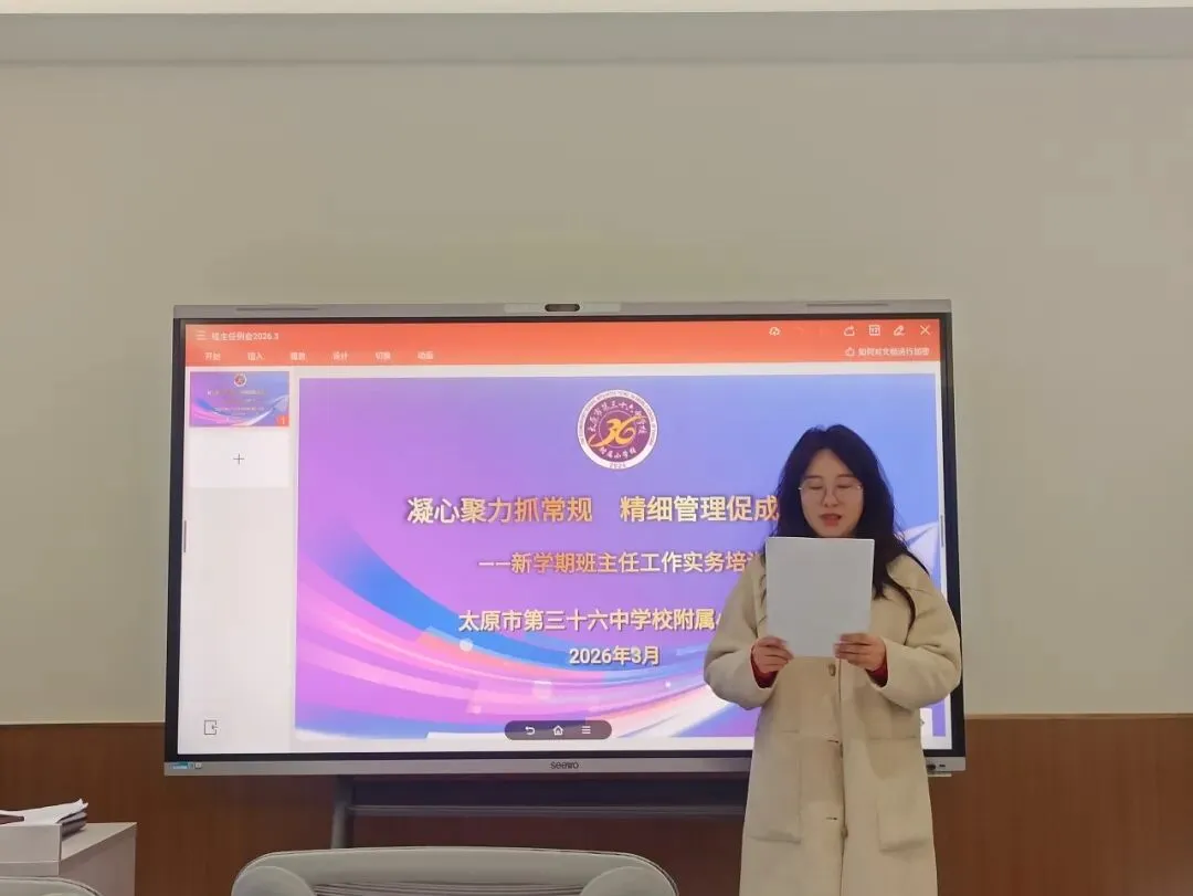 三月春风轻拂,校园里已是书声琅琅。2026年3月6日下午,五楼会议室内气氛热烈,太原市第三十六中学校附属小学校全体班主任齐聚一堂,参加2025——2026学年第二学期第一次班主任例会。本次例会依然采取“以会代训”的形式,将新学期工作部署与班主任实务培训深度融合,旨在帮助全体班主任快速收心归位、明确职责、提升能力,为新学期各项工作开好局、起好步。