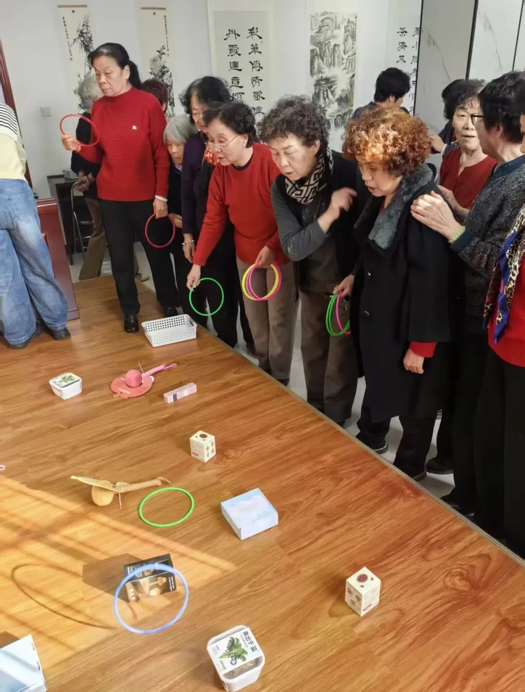 游戏互动环节,老同志们踊跃参与,瞄准、投掷、命中,现场的掌声与欢呼声此起彼伏。