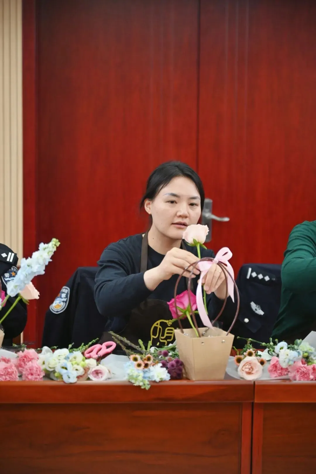 今天的活动主题“铿锵玫瑰担使命,巧手花语绽芳华”深深触动了我。作为青年缉私女警,我们在家庭中是乖女儿,在工作岗位上则是守护国门的卫士。插花让我感受到创造美的快乐,也让我更加珍惜自己的多重身份。愿我们都能在工作中坚韧如钢,在生活中温柔如花,绽放属于新时代青年女警的独特芳华。