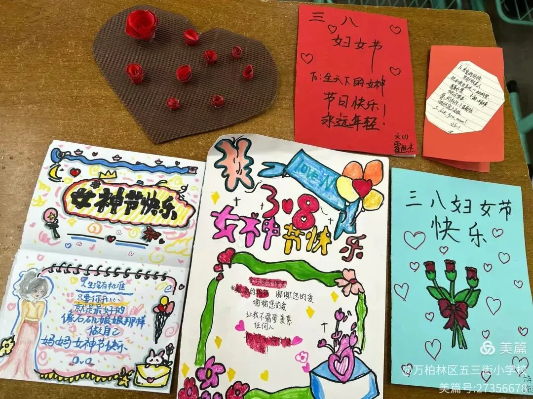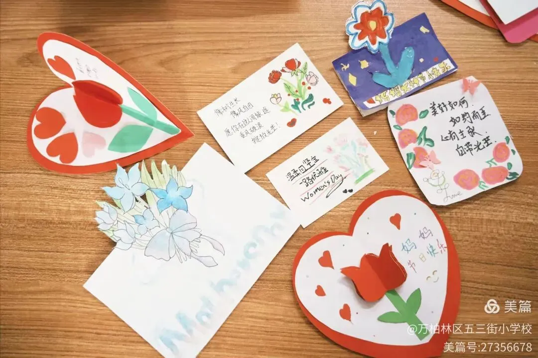 五、六年级以“一张祝福卡·手绘最美她”为主题,鼓励学生发挥创意,亲手制作贺卡。孩子们用彩笔描绘出心中最美的祝福,一张张贺卡凝聚着孩子们对长辈和老师的深情祝福。六(1)班学生说:“我想把这张贺卡送给我的妈妈,因为她是我心中最勇敢、最美丽的人!”