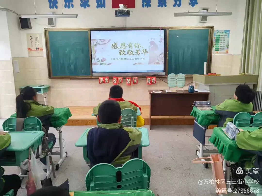 班队会上,同学们踊跃发言、真情流露,纷纷回忆长辈的悉心付出与生活中的温暖瞬间。各班精心拍摄的活动照片,定格下一个个温馨感人的画面,充分展现了万柏林区五三街小学学子心怀感恩、积极向上的精神风貌。