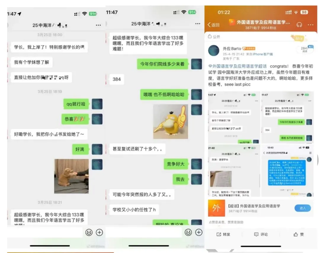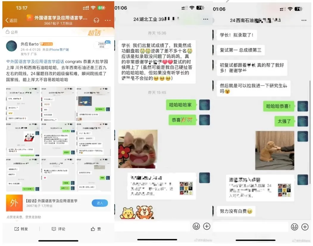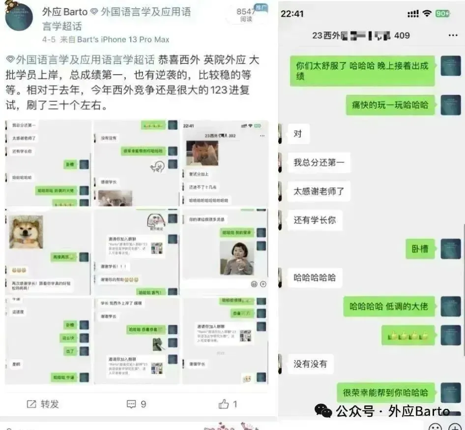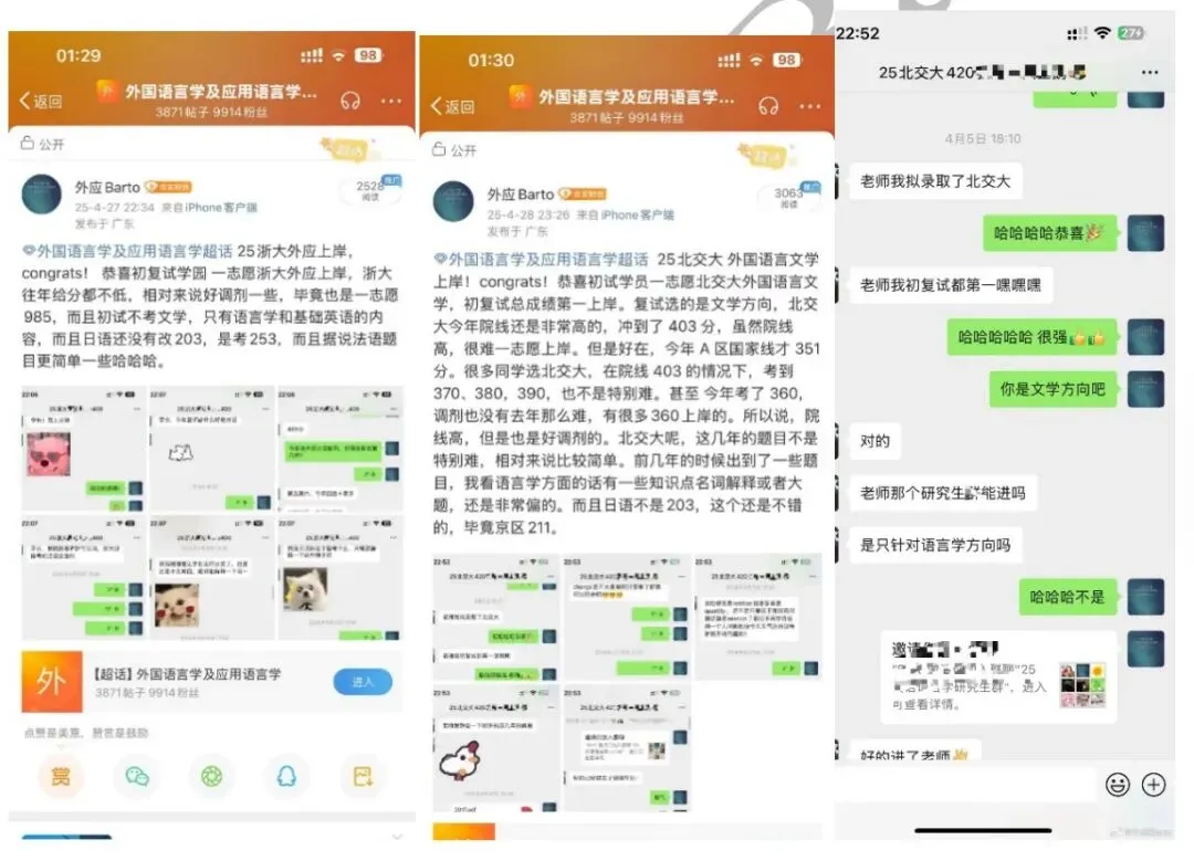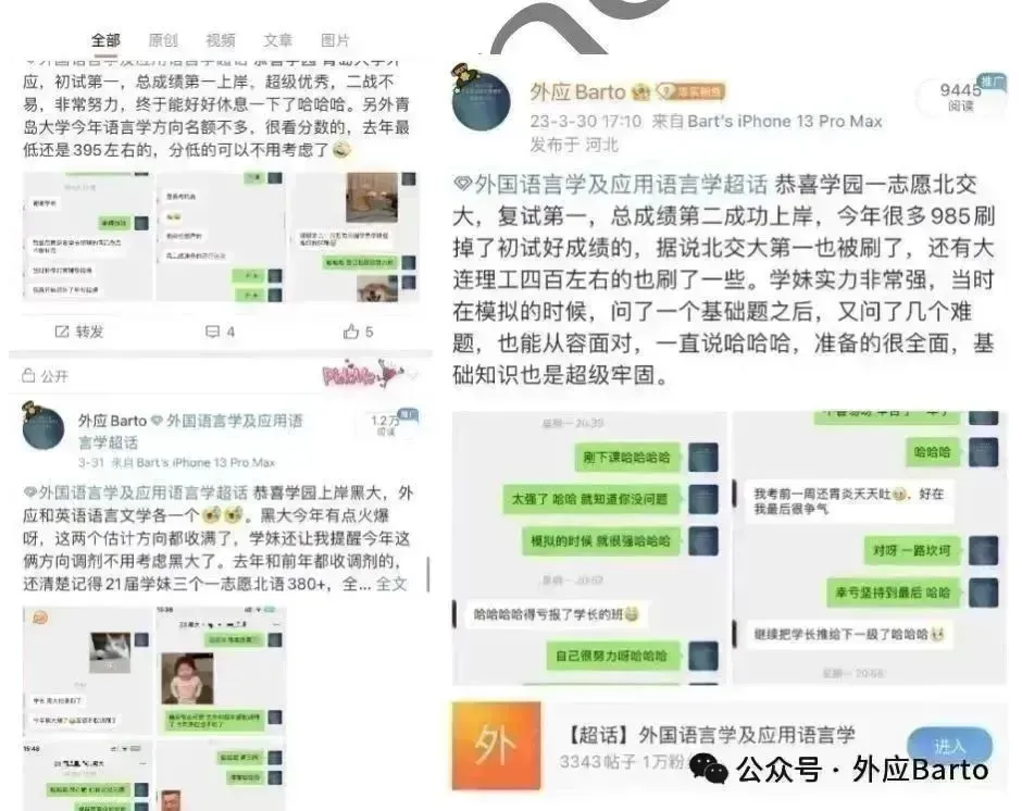 限于篇幅,暂不细数和展示,以下仅展示部分学员情况,其他详情可关注微博/小红书/微信公众号:外应Barto报课详情请咨询外应Barto的个人QQ:1256607997外国语言学及应用语言学、英语语言文学、外国语言文学等方向的备考聚集地等你加入!