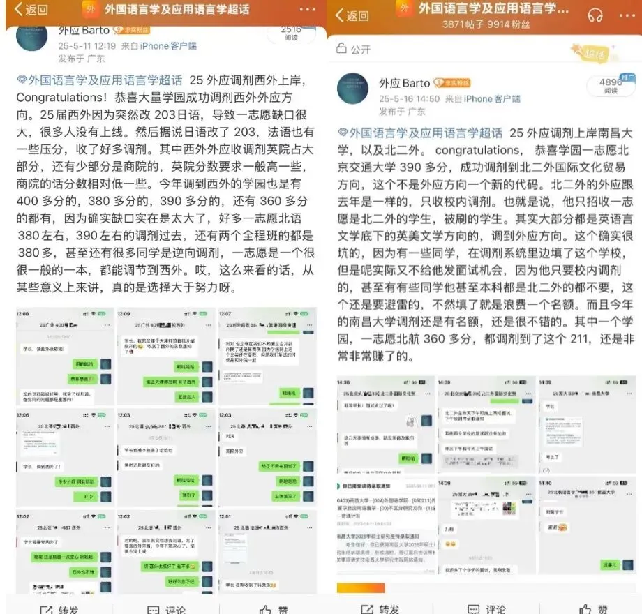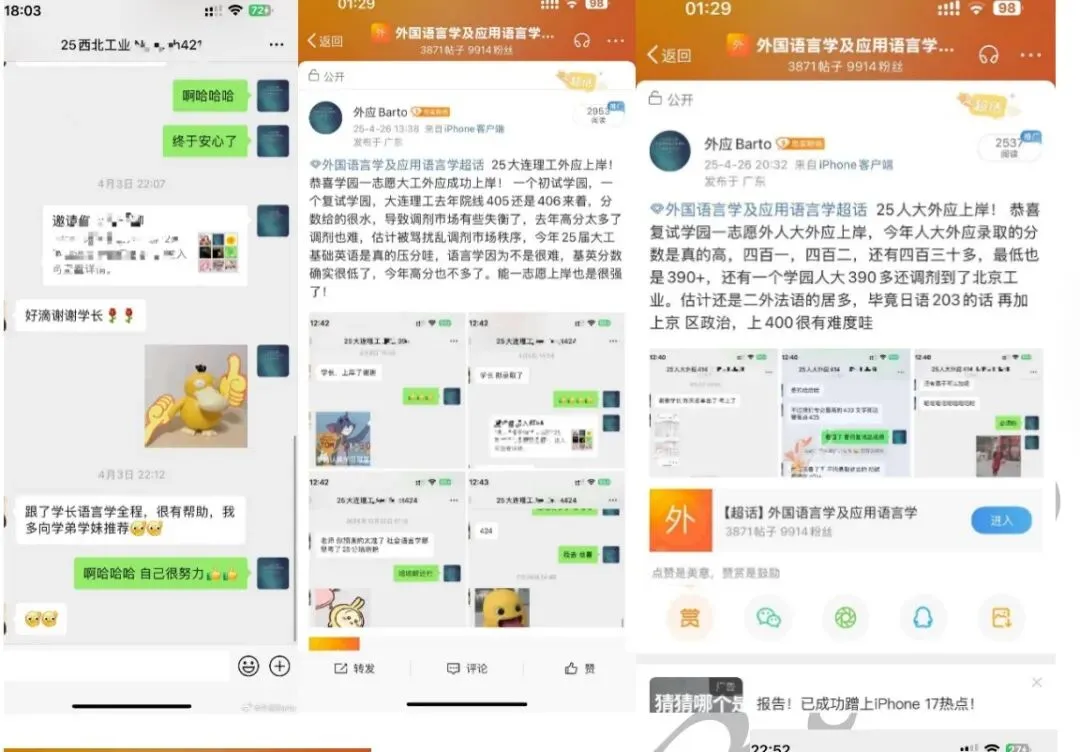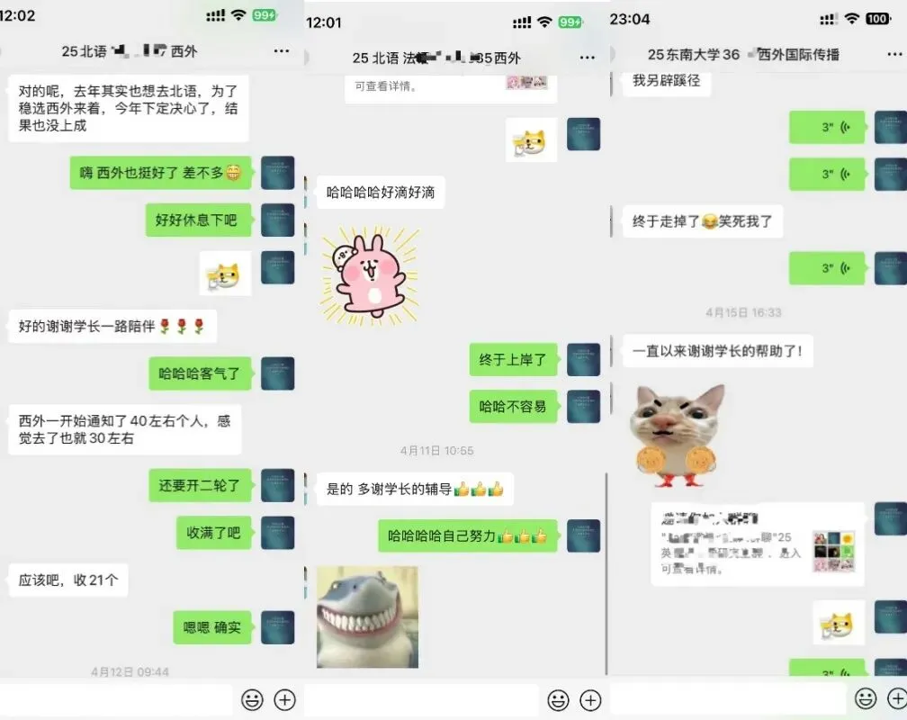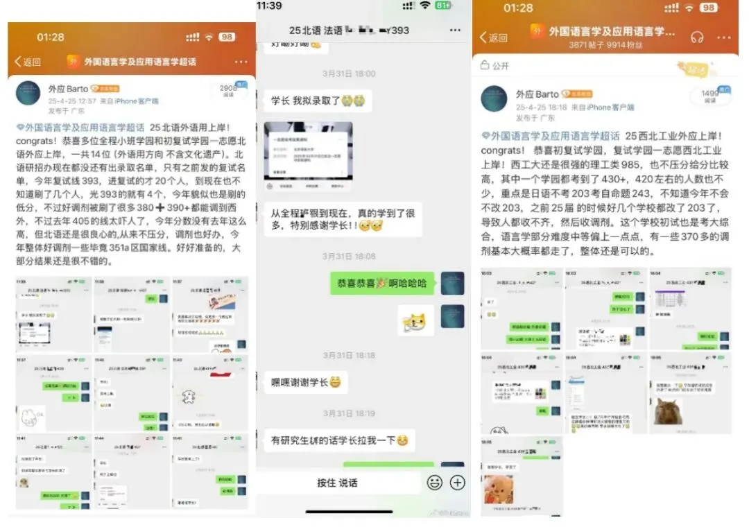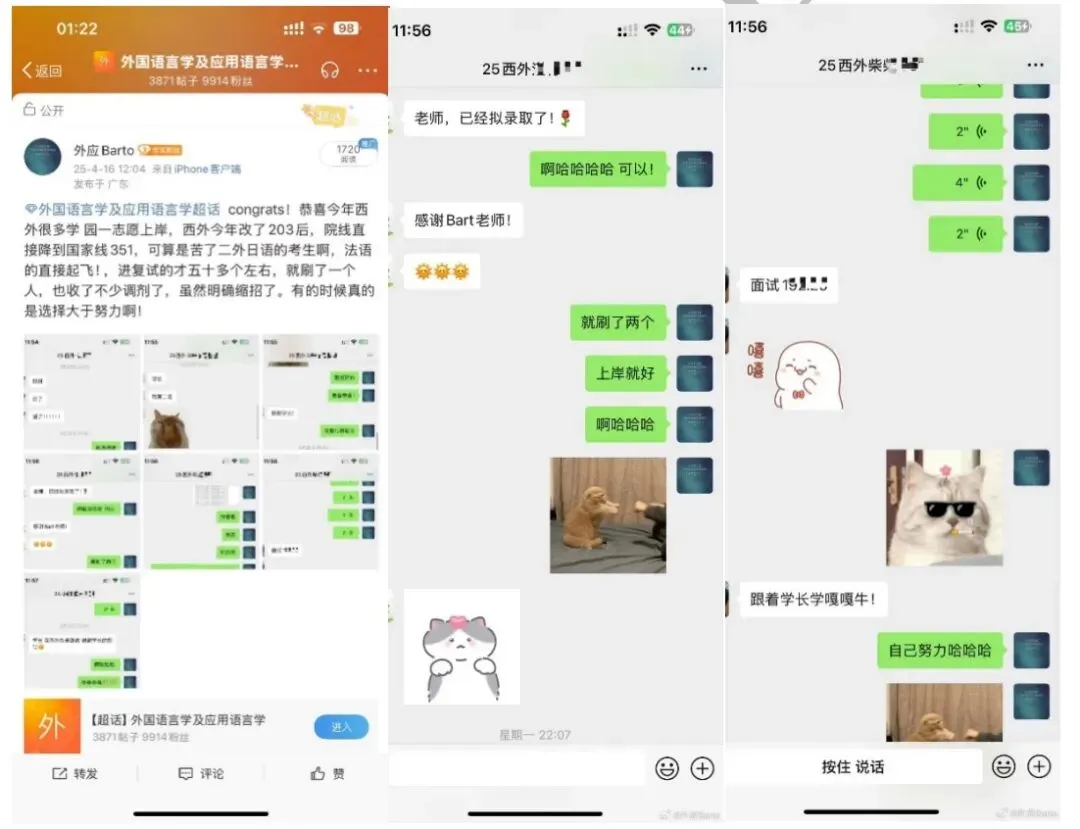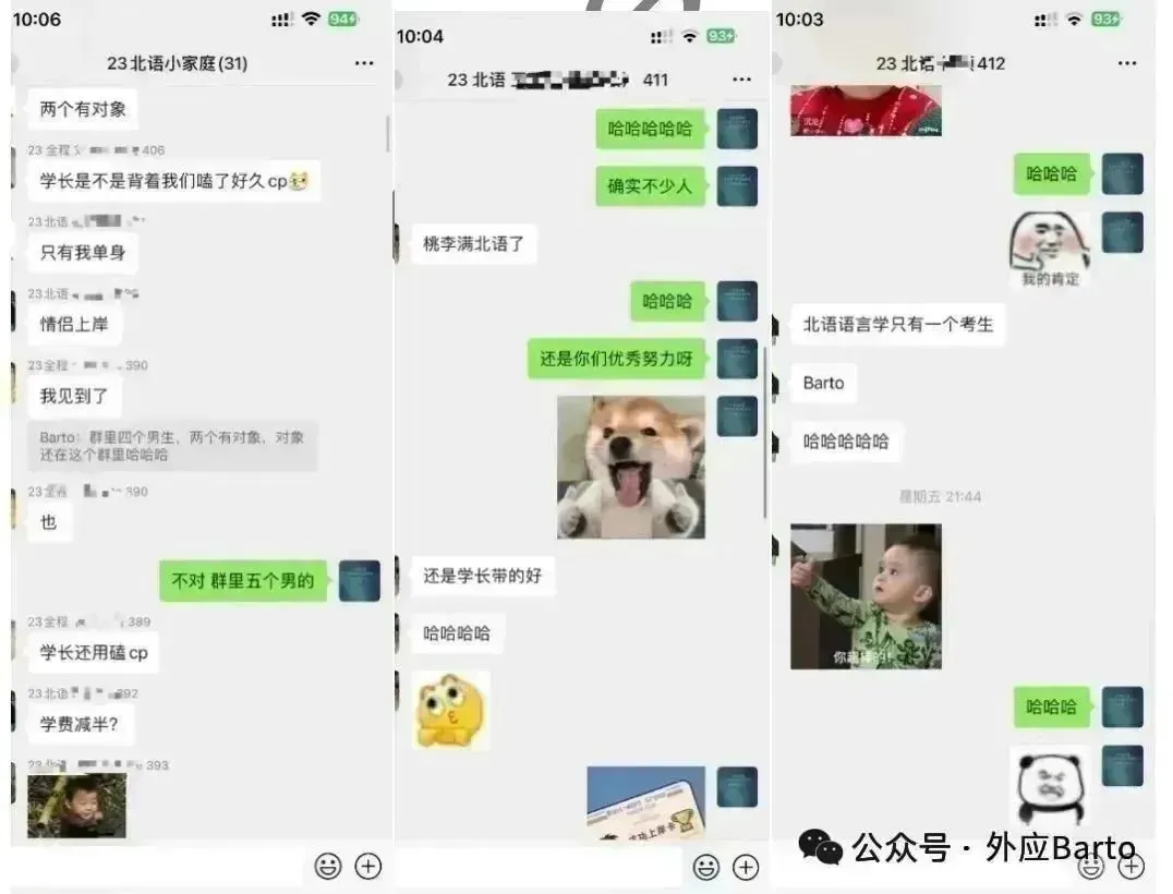 限于篇幅,只展示近三年上岸学员情况,23年以前的学员上岸情况以及更多信息欢迎前往关注微博/小红书/微信公众号:外应Barto25届带的学员,一共上岸240多名,一志愿90+,调剂150+其中一志愿:北语外应上岸14位(复试名单只进了20个人,最后录取15人),文化遗产一志愿1位,西外上岸十几位,西外复试名单52人(最后刷了一个),北航7位,华南理工4位,同济4位,大连理工2位,以及东北大学、中南大学2位,山东师范2位,上海理工,四川外国语4 位,长安大学、中北大学2位(其中一个全程班学院从北语转过去),中南财经政法(403 也是全程班转的)。西南石油四位,湘潭大学,地大北京,西北工业 3 位,人大,首都经贸总成绩第一,北邮,天津工业,浙大2位,东北林业2位,北交大420(初复试都第一)电子科技大学,云南师范两位,华北电力北京一位。南昌大学、辽宁大学、上海理工、湖南大学,华东师范等等。调剂:12位上岸西外,6 位上岸北语文化遗产,5 位上岸上海师范、广西师范,4 位上岸山西财经、山西大学,3 位上岸天津师范、长江大学、山东财经、河南大学、山西师范、河北大学、西北大学、内大、牡丹江师范,2 位上岸安徽大学、福州大学、长春工业、桂林电子科技、河北师范、华侨大学、北京工业、浙江工业、济南大学、上海海事、河南师范、江西师范、南昌大学、内师大、兰州交通、大外、武汉理工;苏州大学、青岛大学、黑大跨文化沟通、黑大、海南师范、中南林业、齐齐哈尔、吉林外国语、曲阜师范、东北财经、江苏大学、浙江理工、宁夏大学、河北大学(天津理工)、江苏师范、浙江财经 翻译学、烟台大学、重庆交通、天津工业、三峡大学、青岛科技、沈阳化工、河南工业、地大武汉、燕山大学、西外国际关系、广西大学、黑大文学、贵州师范、矿大北京、辽宁师范、西北师范、西安工程、黑大外语教育、大连大学、天津理工、黑大外应、内蒙古工业、沈阳师范、兰大、浙江工商、北二外、汕头大学、上海对外经贸、河北科技、北华大学、兰州理工、北科、天外、广西民族、南宁师范、新疆大学、上海海洋等等。(更多微博/小红书关注:外应Barto)