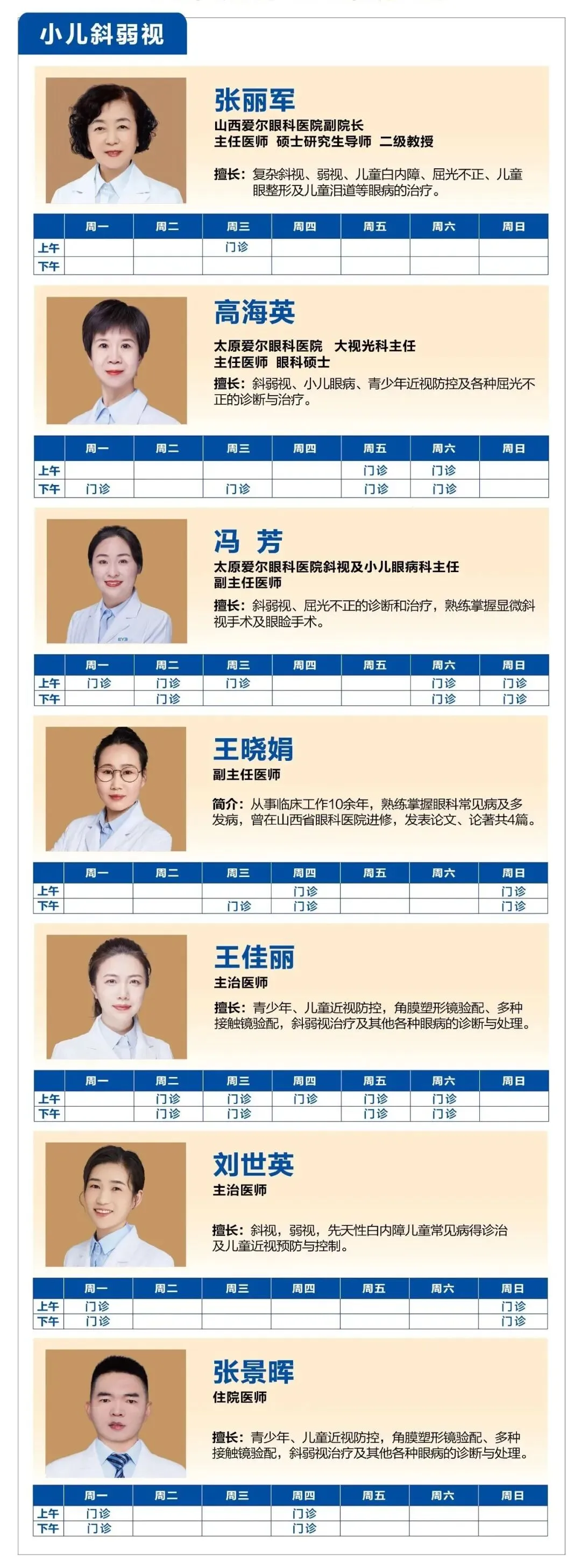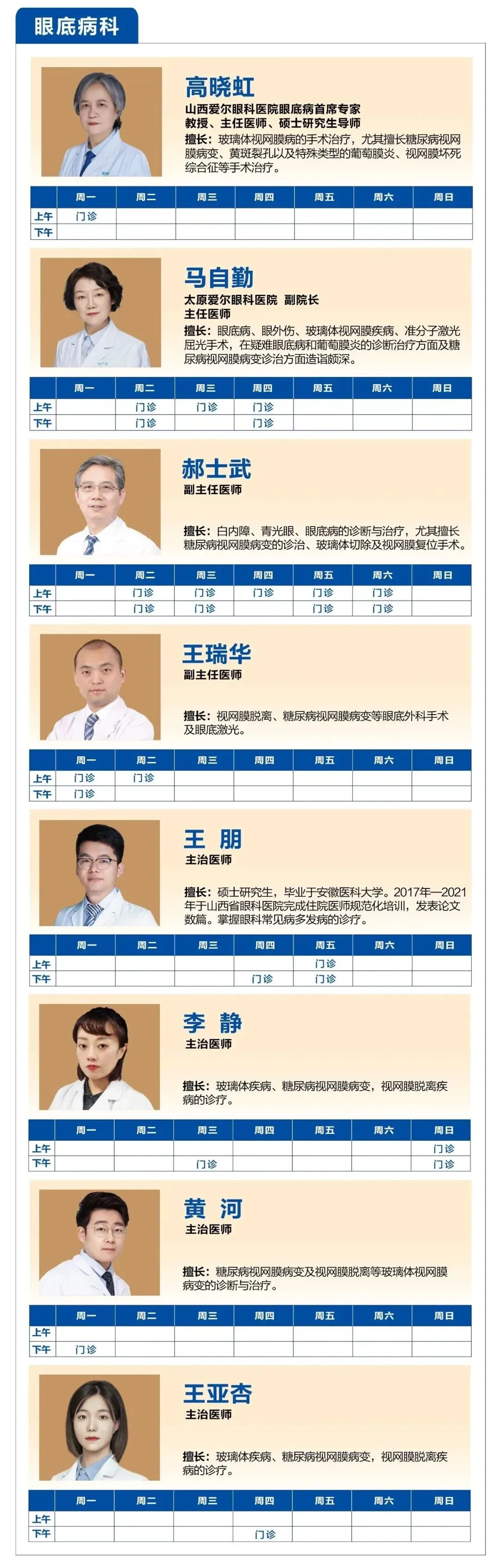 >太原爱尔眼科医院2026年3月9日—2026年3月15日门诊排班表