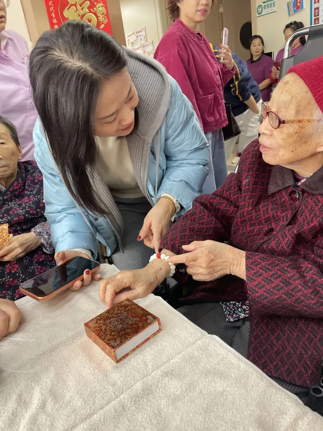 此次活动深入践行积极应对人口老龄化国家战略,落实老龄工作部署,将传统文化传承与为老服务相结合,指尖翻飞间,串起的不仅是温润的菩提与艳红的朱砂,更是珏心公益对老年群体的深切关怀与美好祝福,让传统文化的暖意与节日的喜悦,浸润每一位老人的心房。